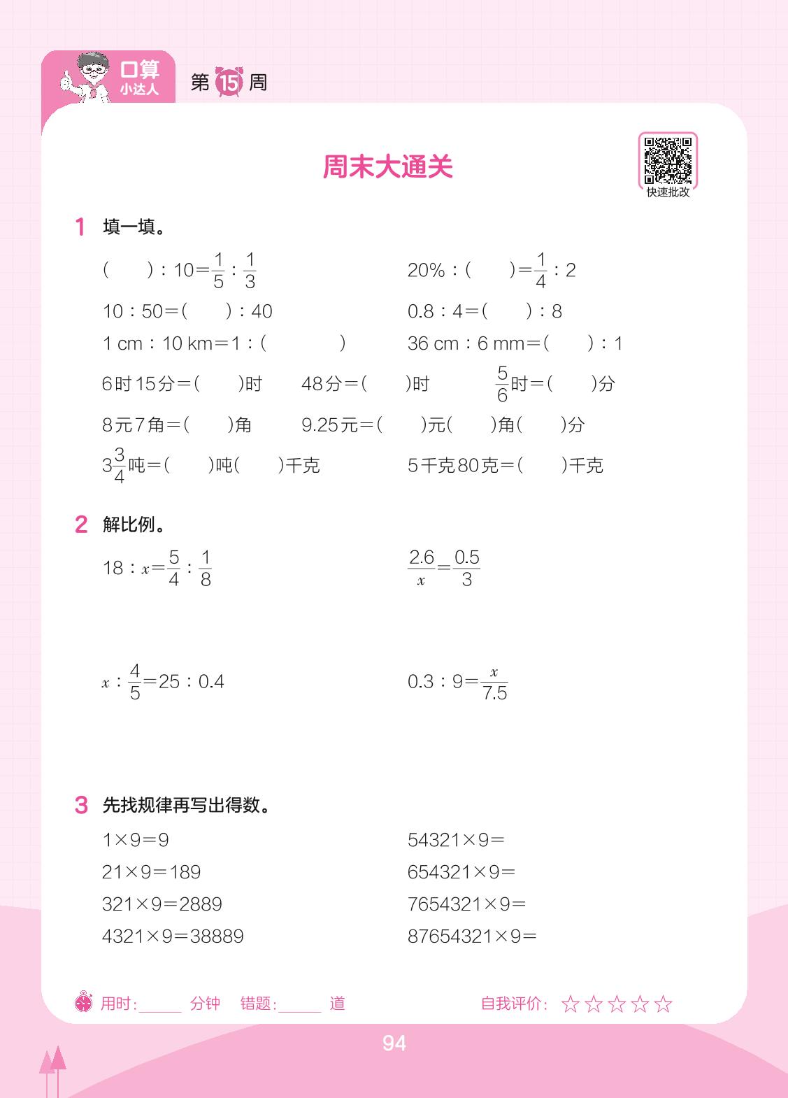 2023下册六年级数学北师版 第15周 周末大通关