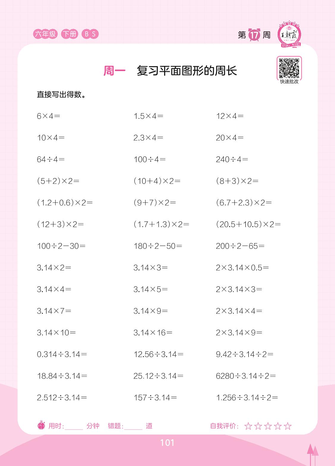 2023下册六年级数学北师版 第17周 周一