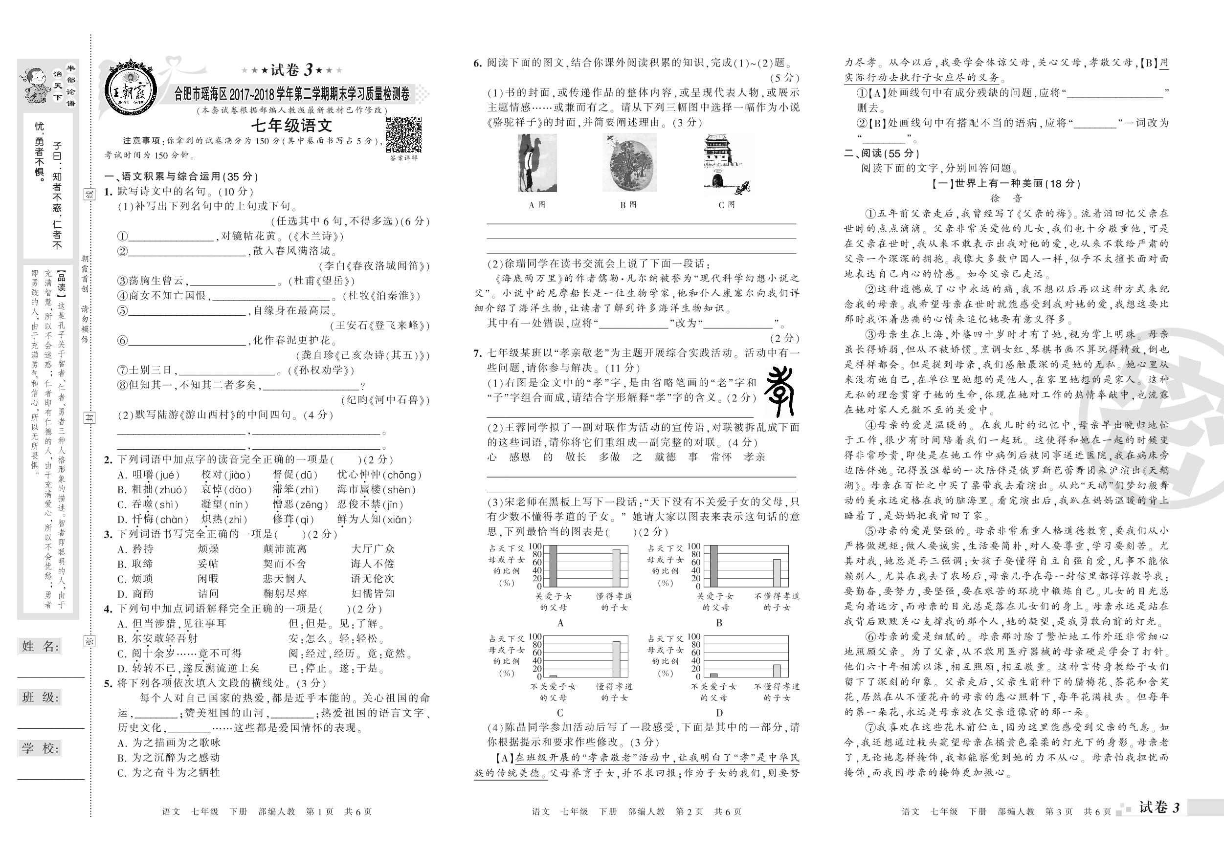 2017-2018学年第二学期合肥市瑶海区七年级语文试卷(人教版)【3】