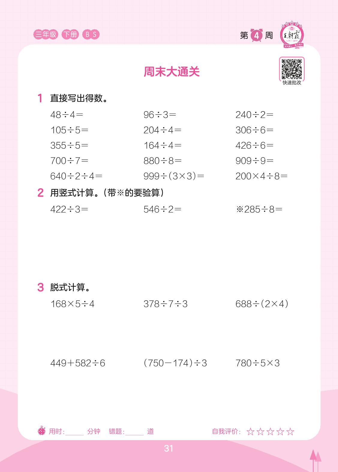 2023下册三年级数学北师版 第4周 周末大通关