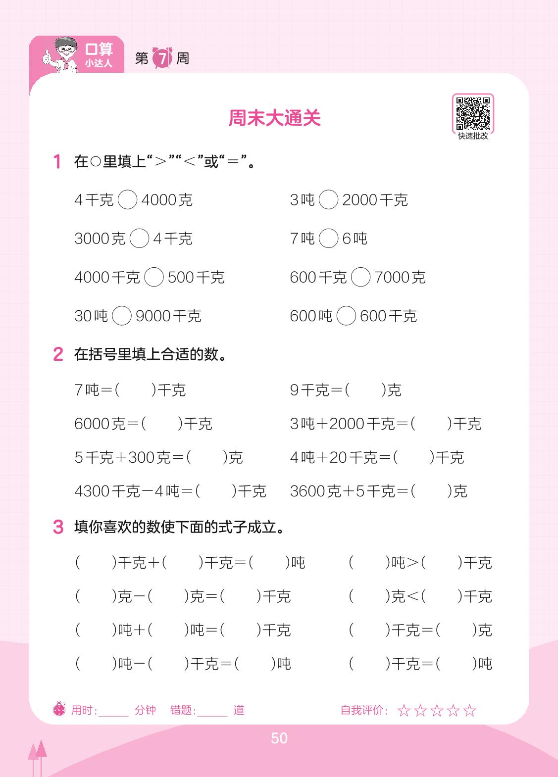 2023下册三年级数学北师版 第7周 周末大通关