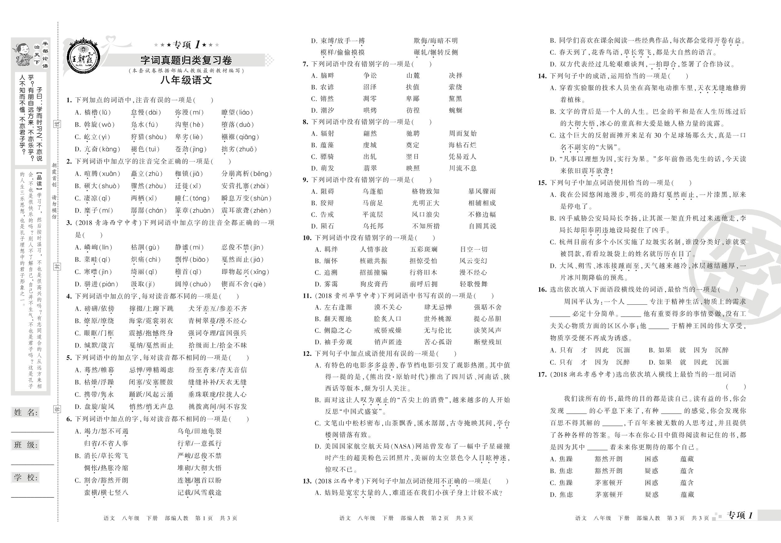 王朝霞期末专项卷——字词、句子真题归类复习卷八年级下册语文(人教版)_R210802174026【0】