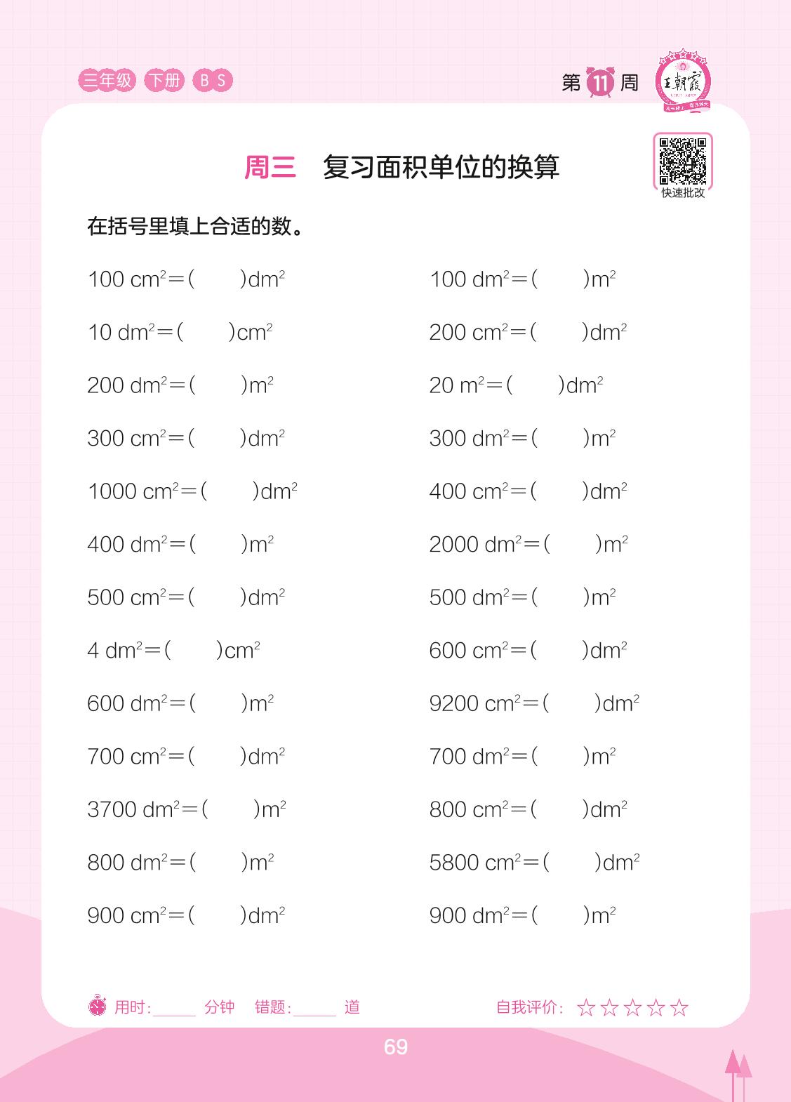 2023下册三年级数学北师版 第11周 周三
