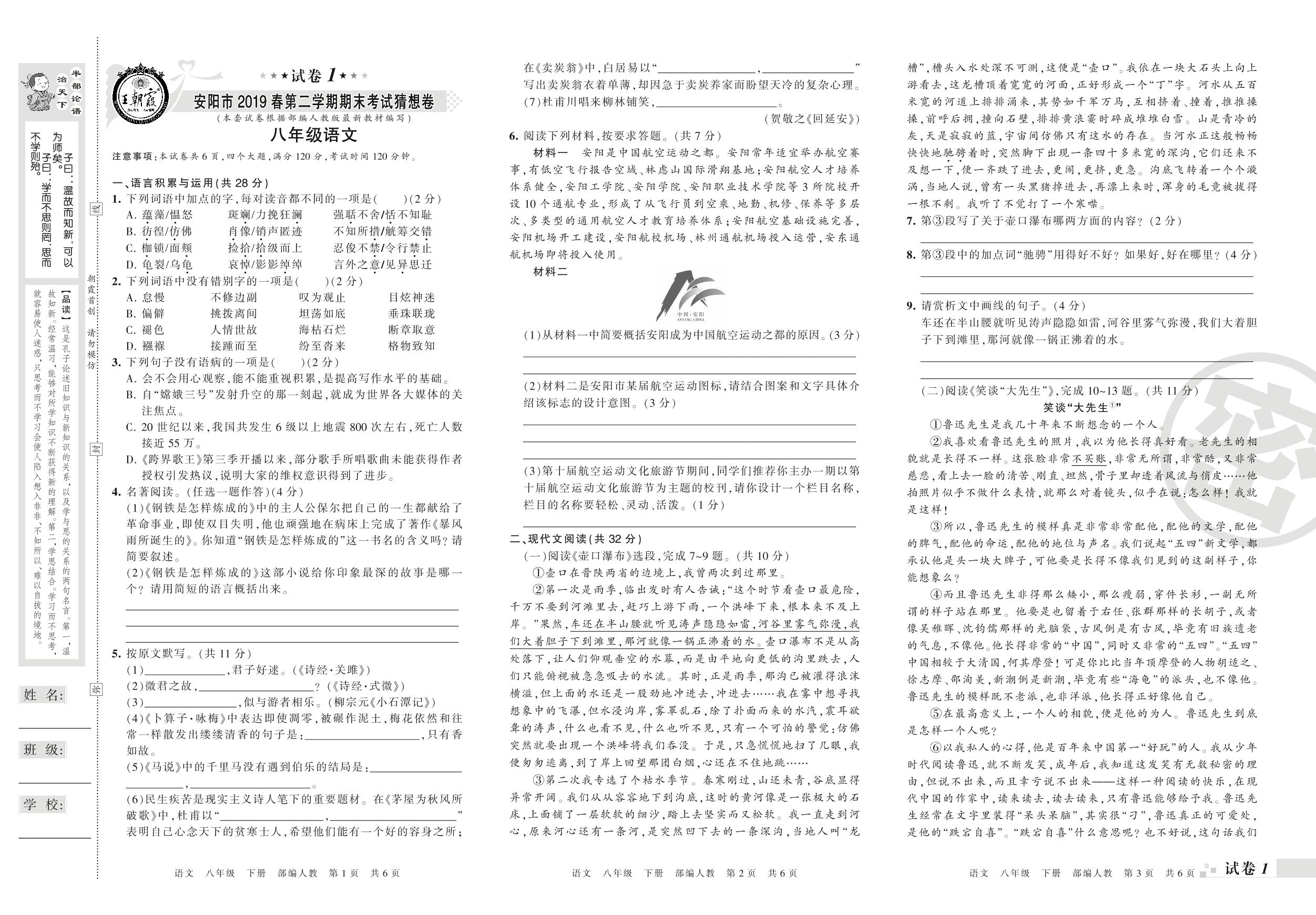 2018-2019学年第二学期安阳市猜想卷八年级语文试卷(人教版)【1】