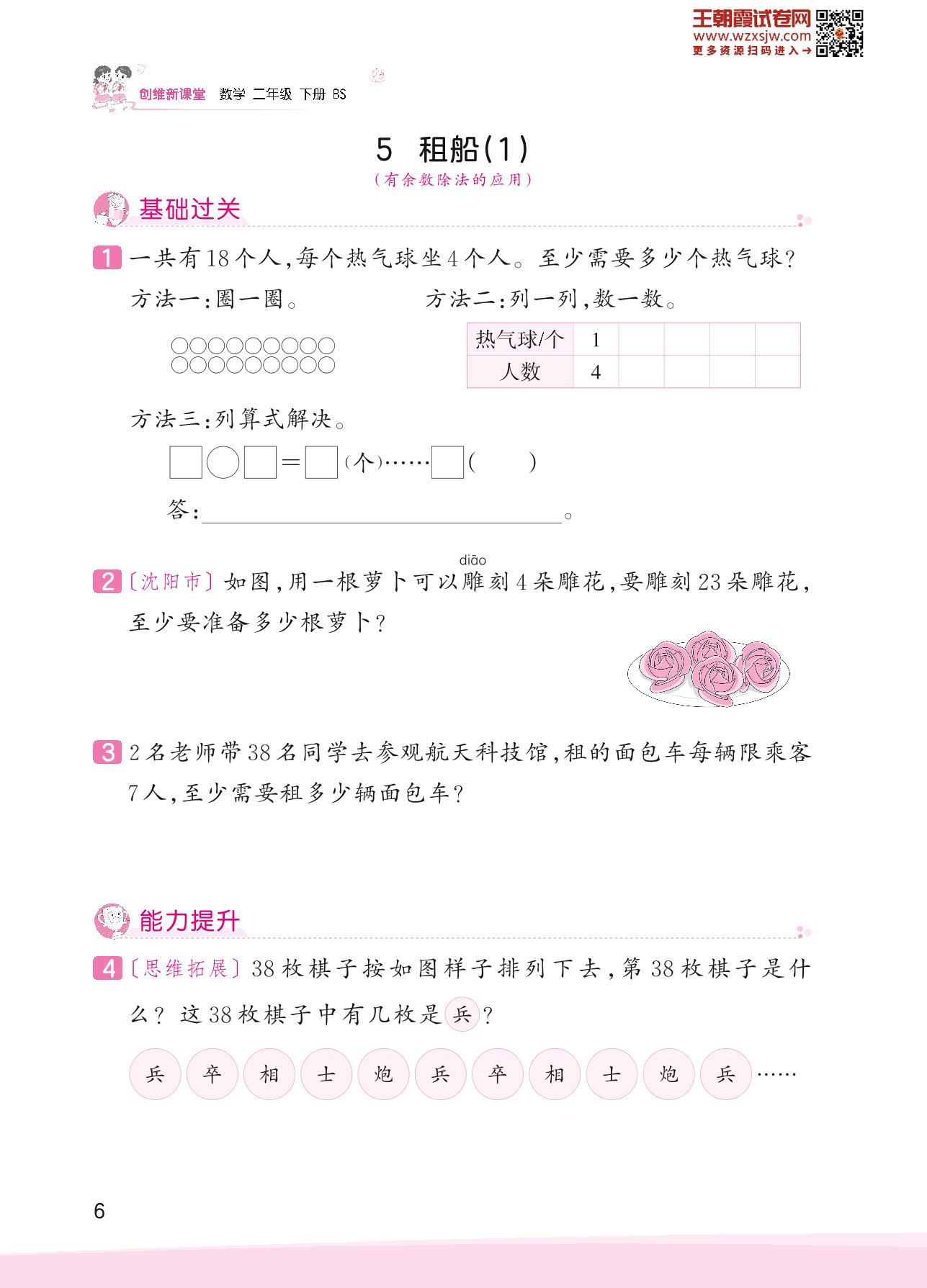 2023下册二年级数学北师版 一 除法——5 租船(1)