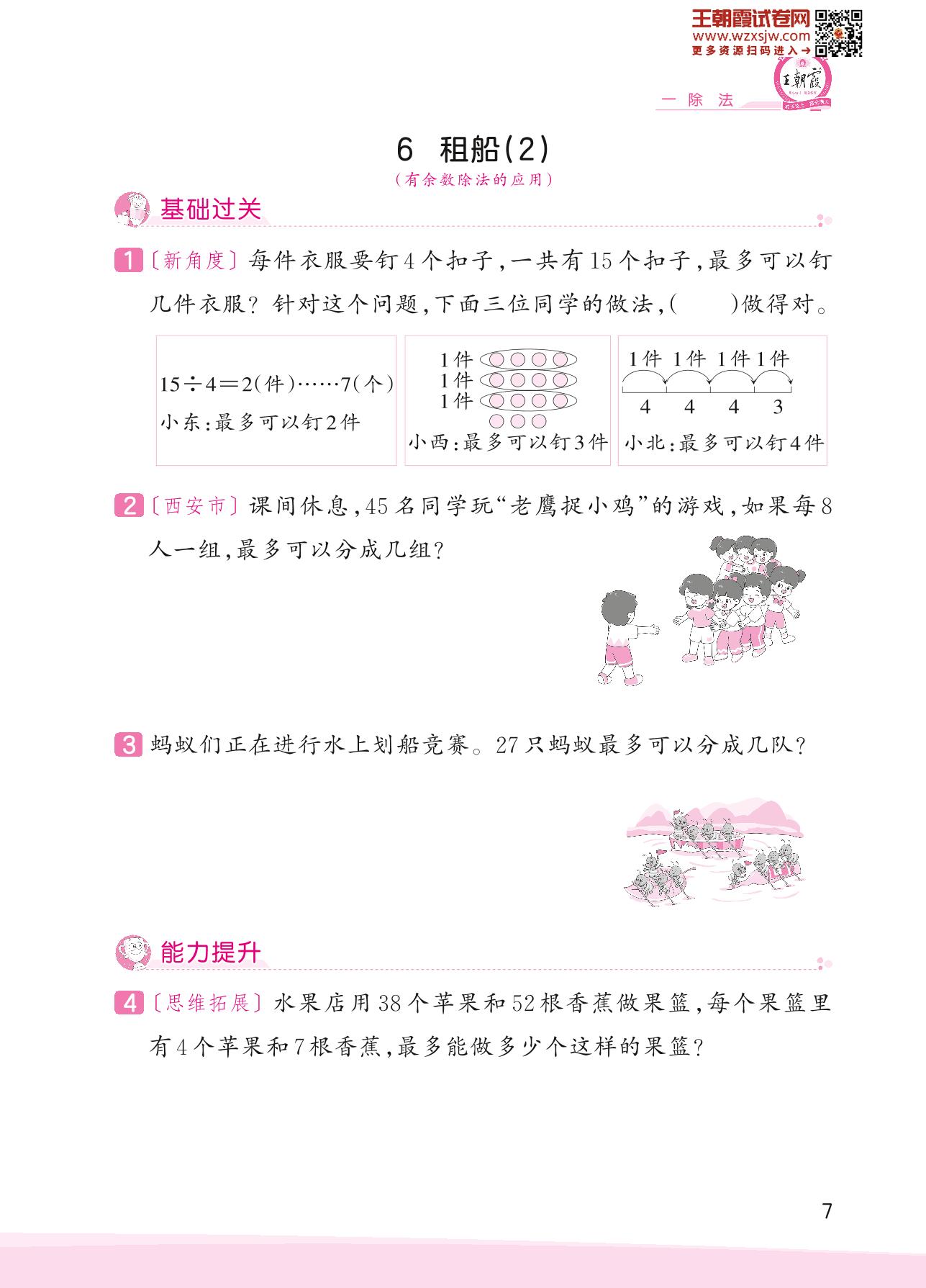 2023下册二年级数学北师版 一 除法——6 租船(2)