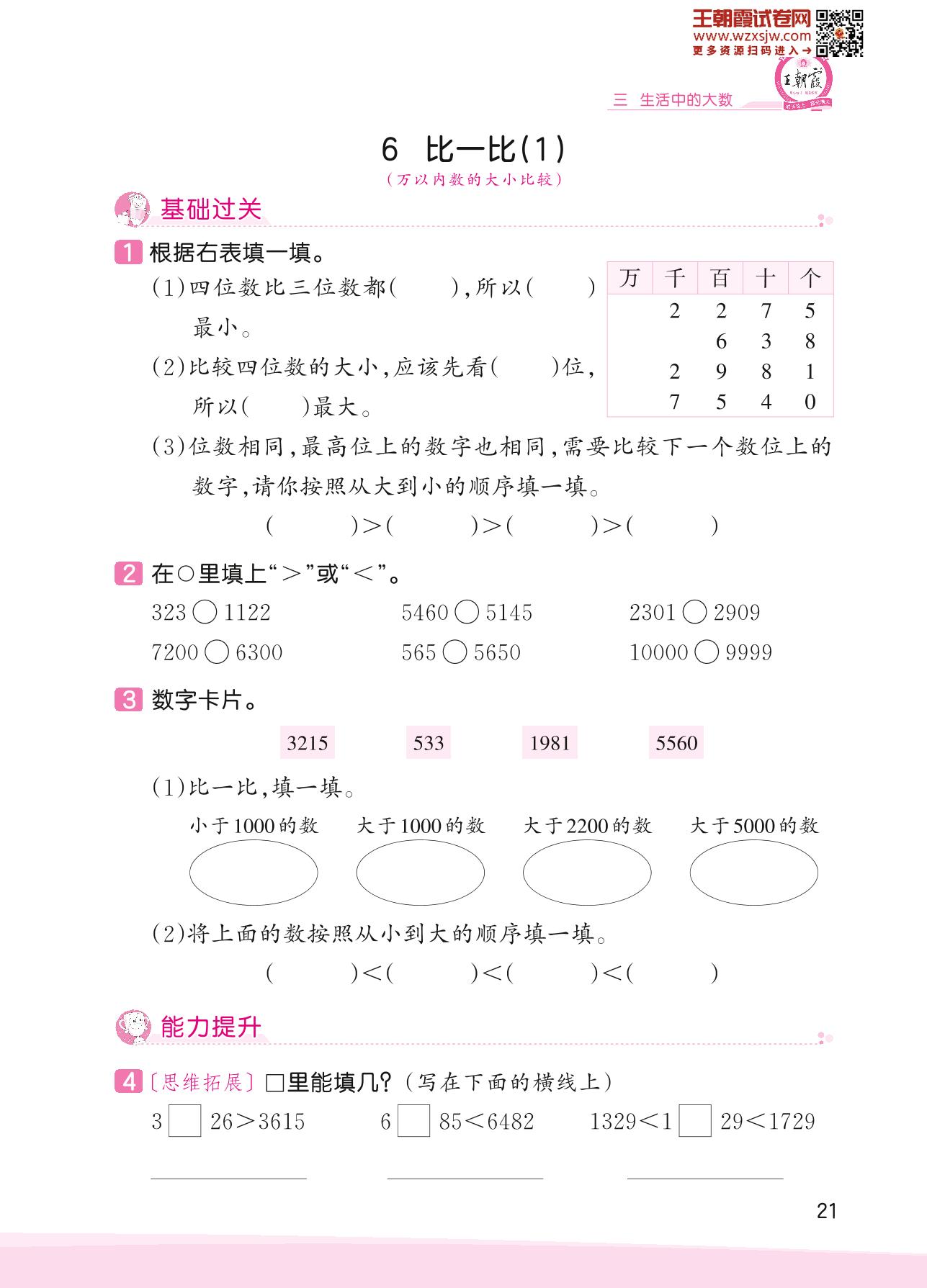 2023下册二年级数学北师版 三 生活中的大数——6 比一比(1)