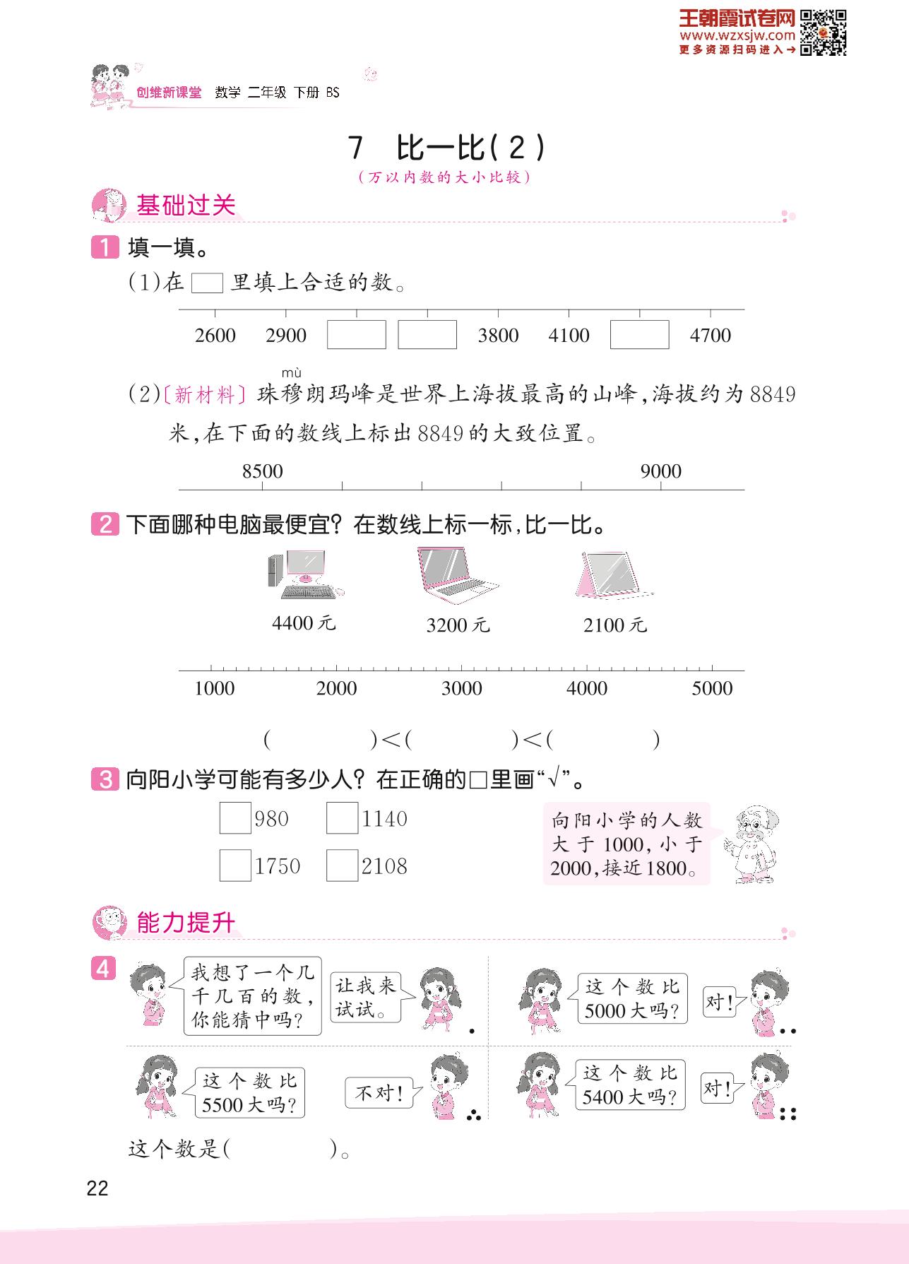 2023下册二年级数学北师版 三 生活中的大数——7 比一比(2)