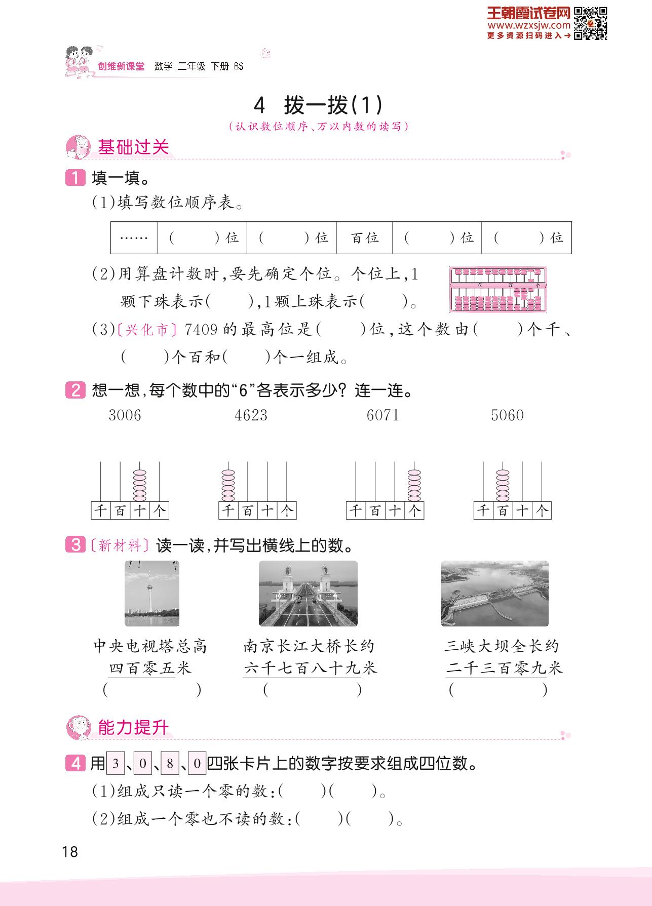 2023下册二年级数学北师版 三 生活中的大数——4 拨一拨(1)
