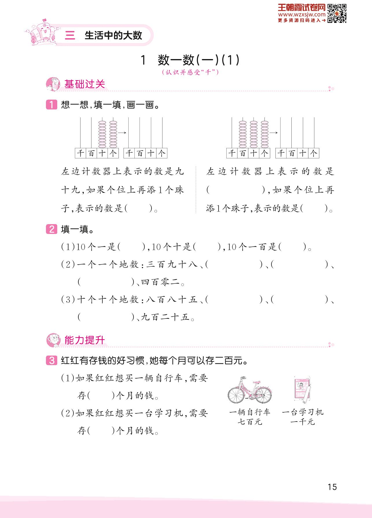 2023下册二年级数学北师版 三 生活中的大数——1 数一数(一)(1)