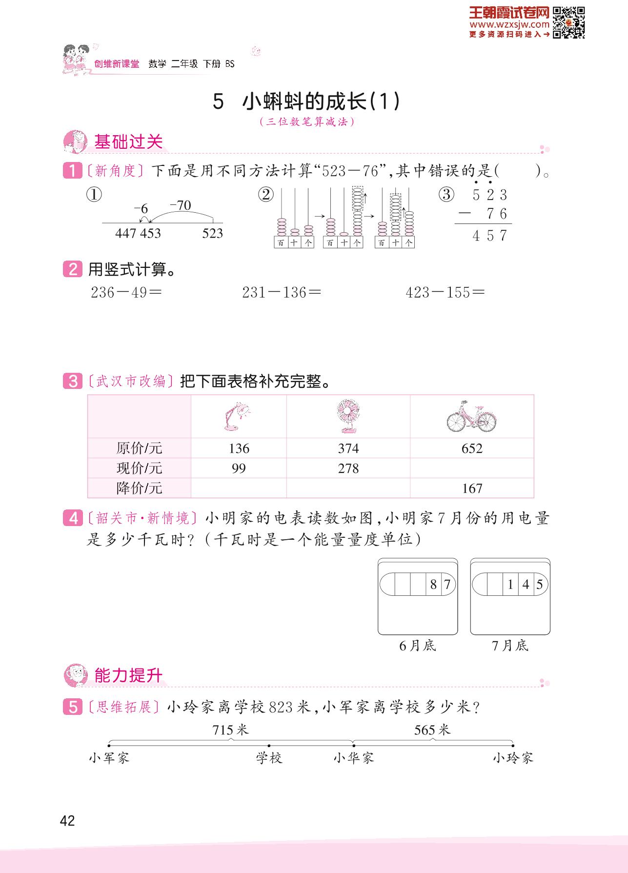 2023下册二年级数学北师版 五 加与减——5 小蝌蚪的成长(1)