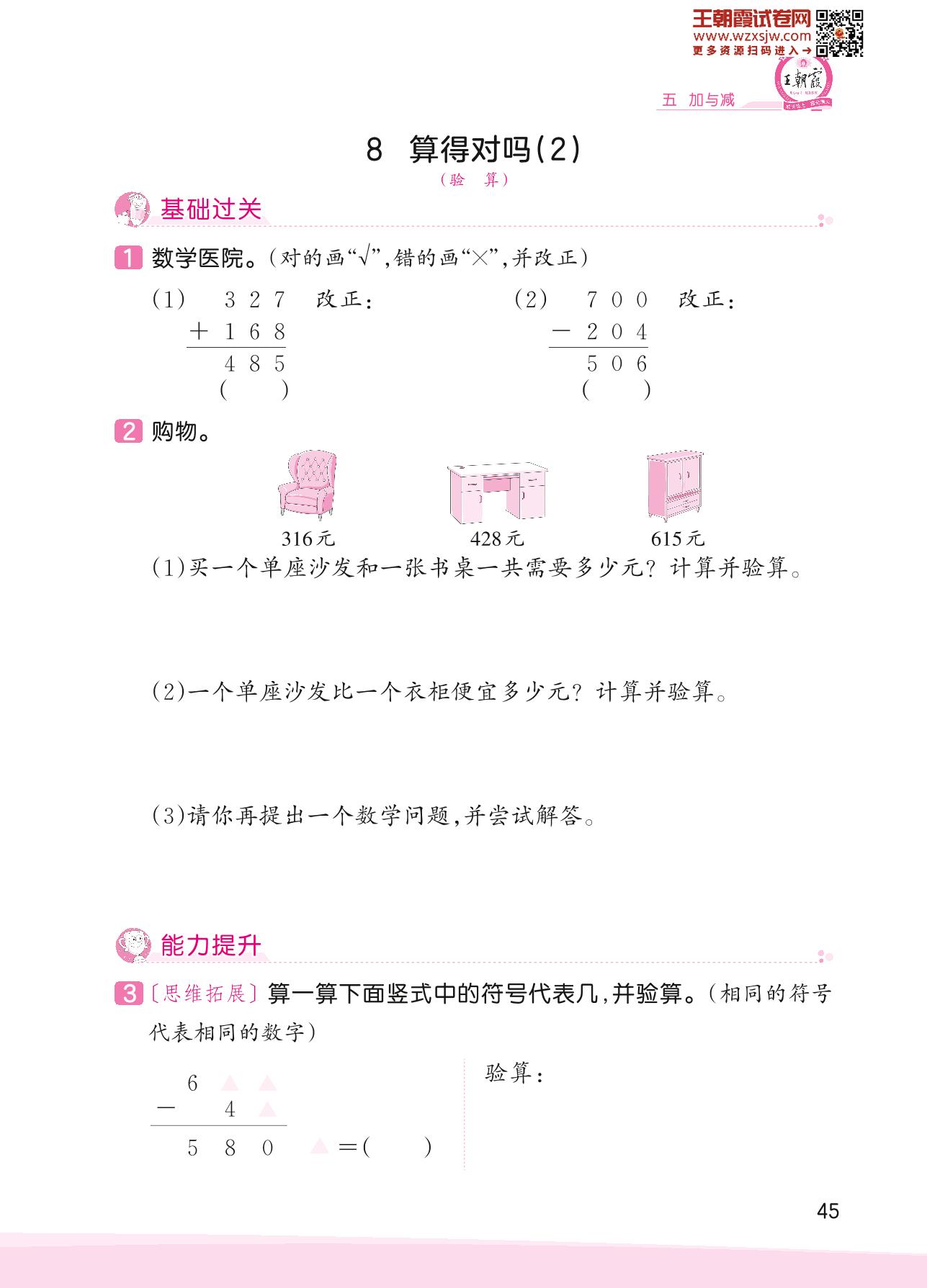 2023下册二年级数学北师版 五 加与减——8 算得对吗(2)