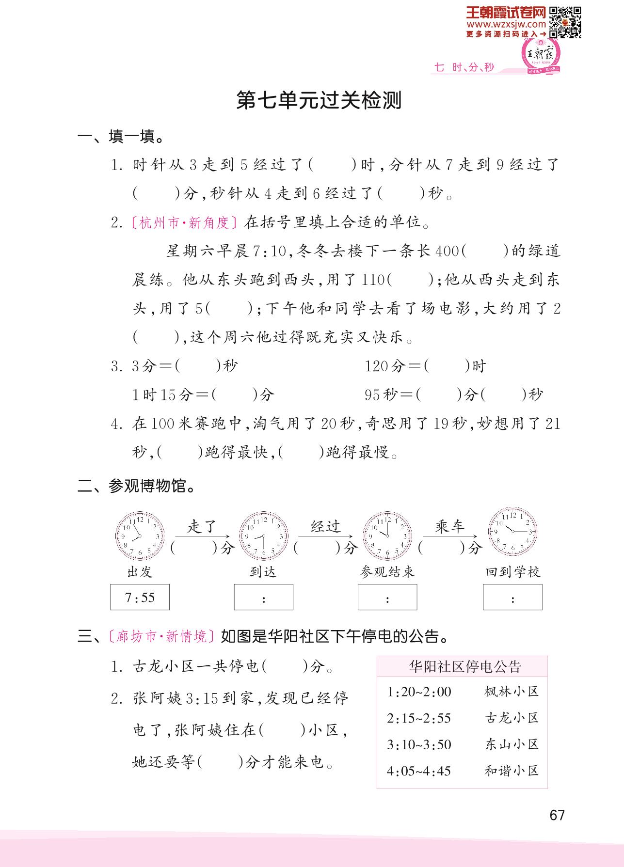 2023下册二年级数学北师版 第七单元过关检测