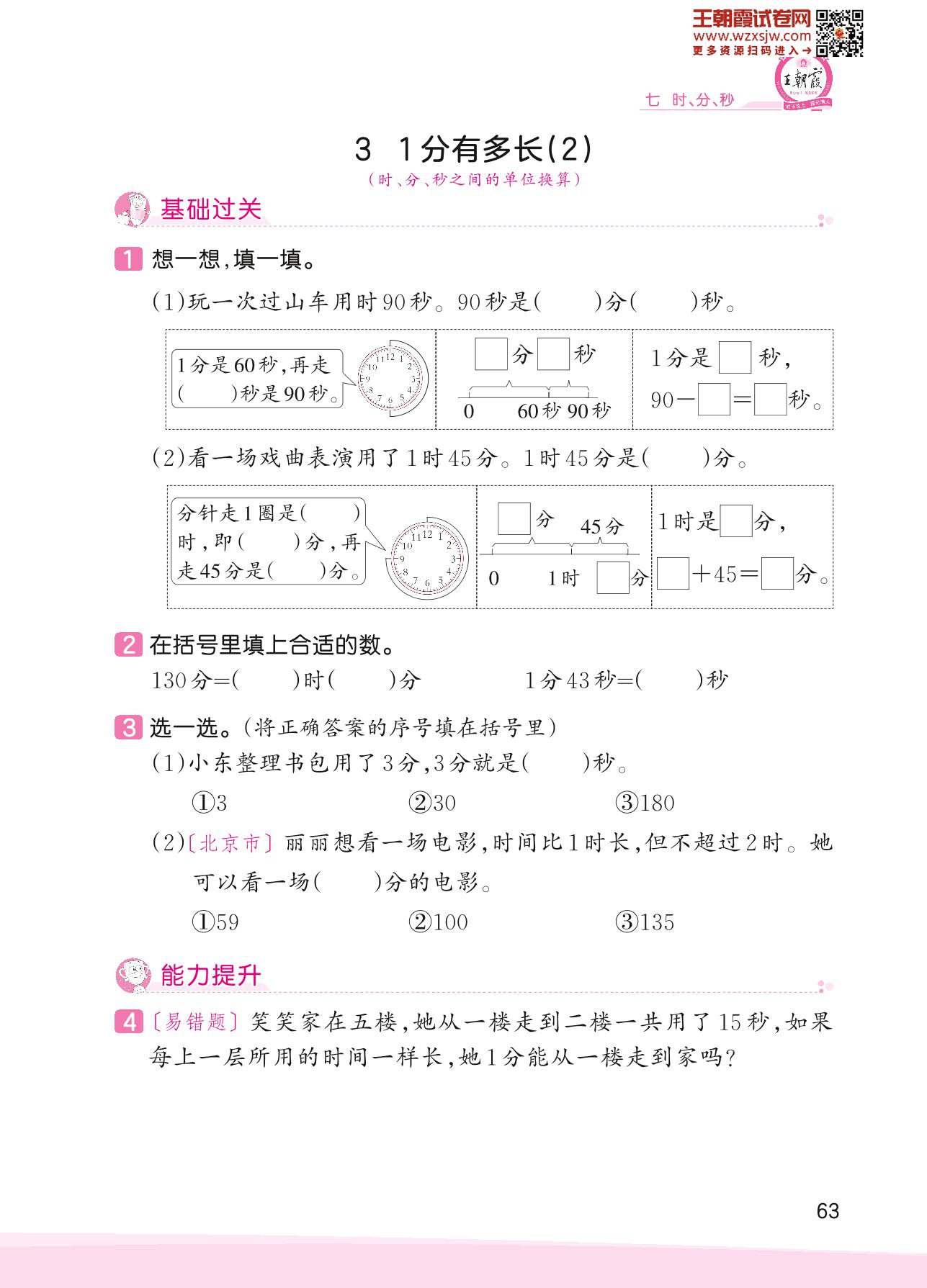 2023下册二年级数学北师版 七 时、分、秒——3 1分有多长(2)