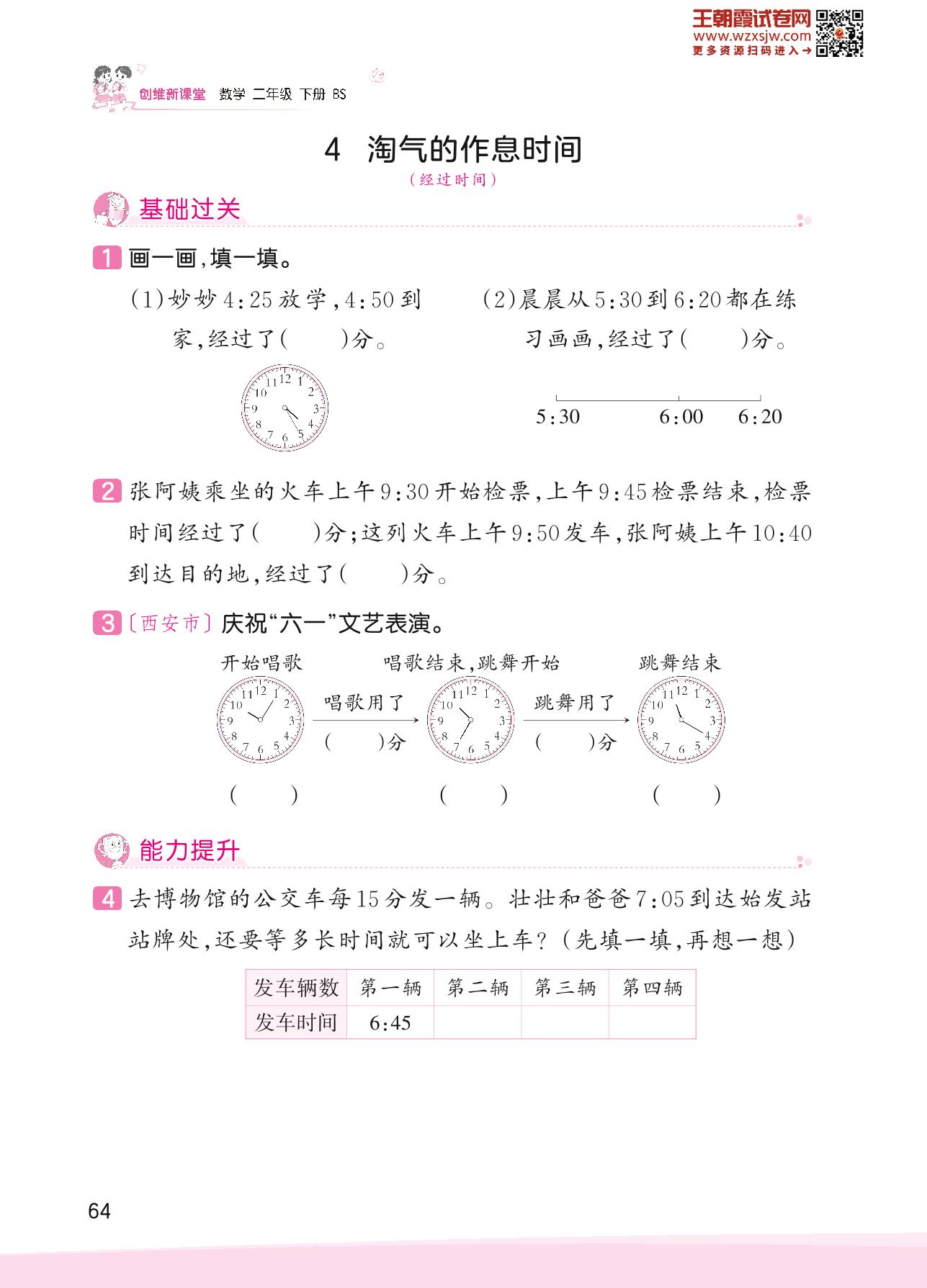 2023下册二年级数学北师版 七 时、分、秒——4 淘气的作息时间