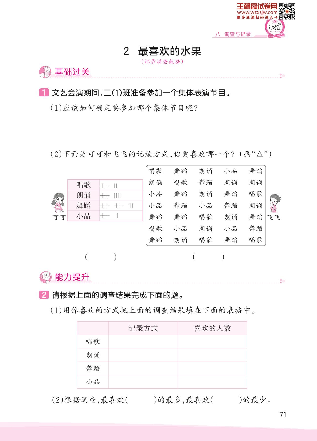 2023下册二年级数学北师版 八 调查与记录——2 最喜欢的水果