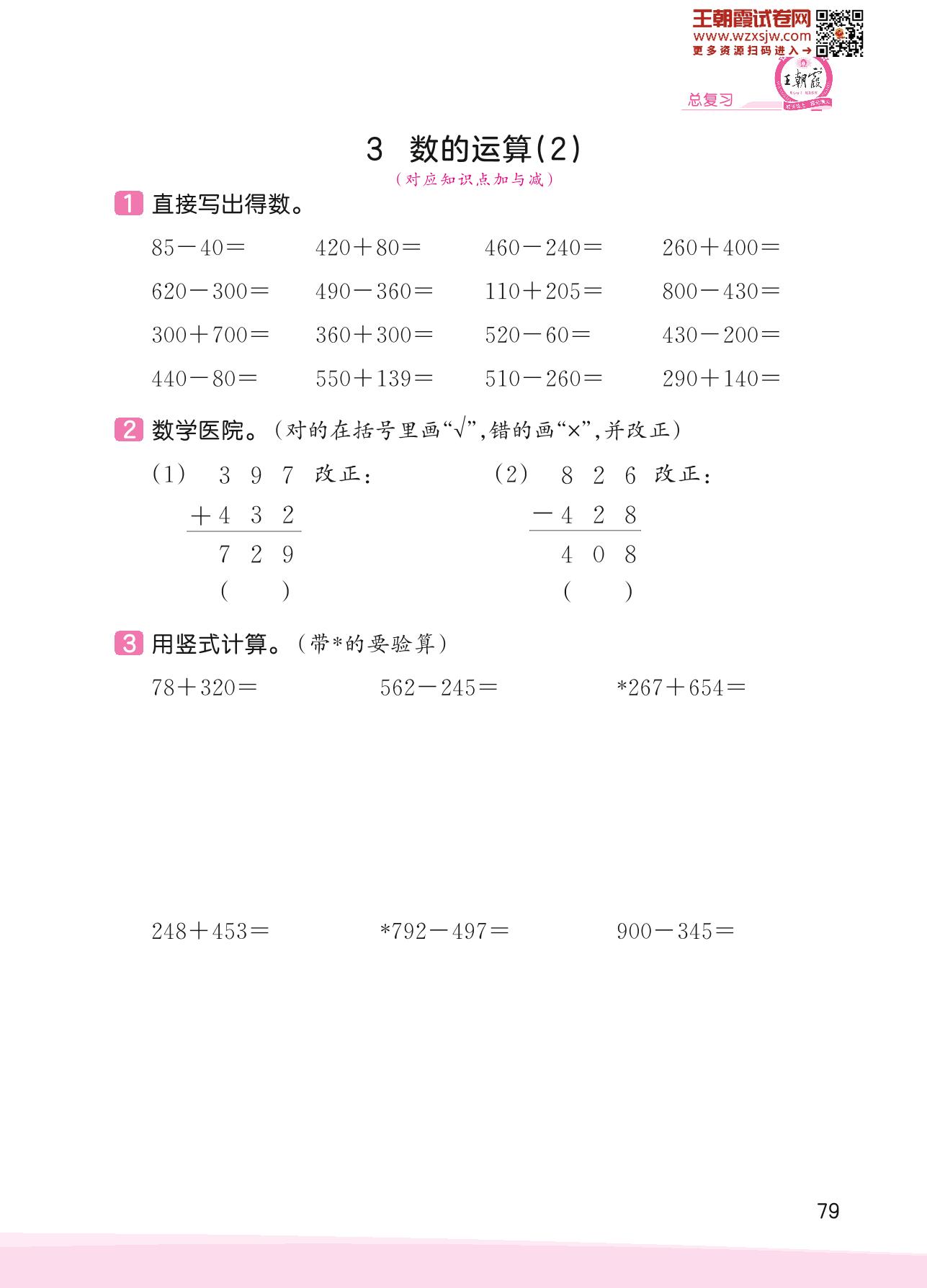 2023下册二年级数学北师版 总复习——3 数的运算(2)