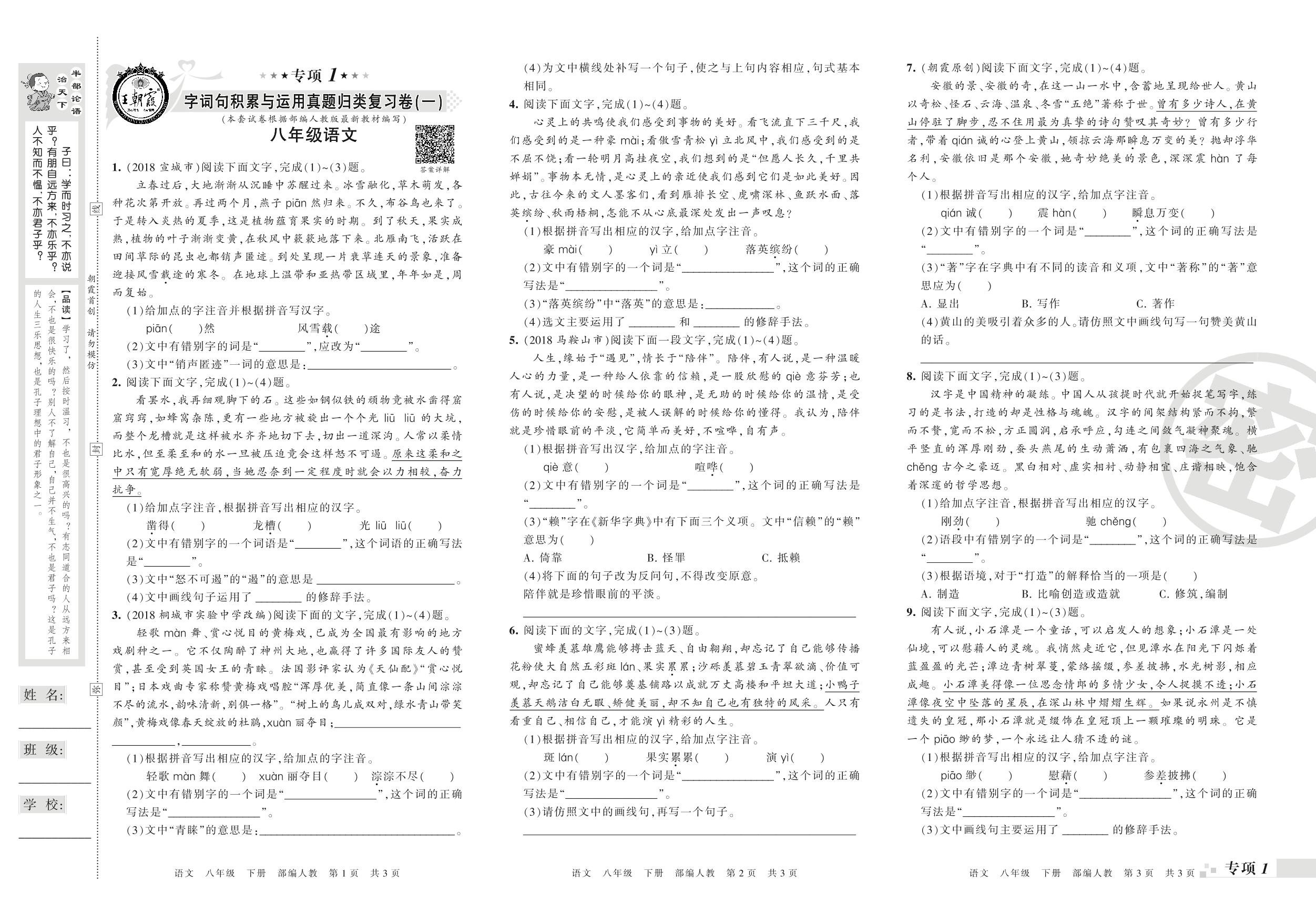 王朝霞期末专项卷——字词句积累与运用(一)(二)真题归类复习卷八年级下册语文(人教版)_R210802175517【0】