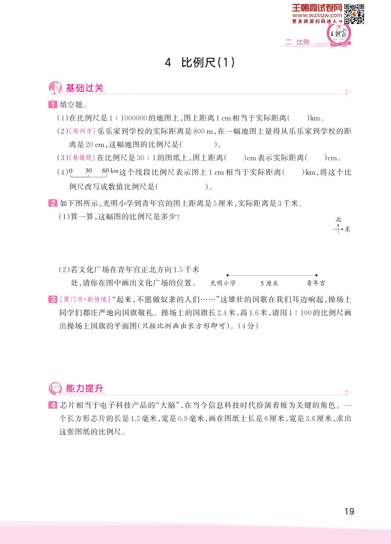2023下册六年级数学北师版 二 比例——4 比例尺(1)