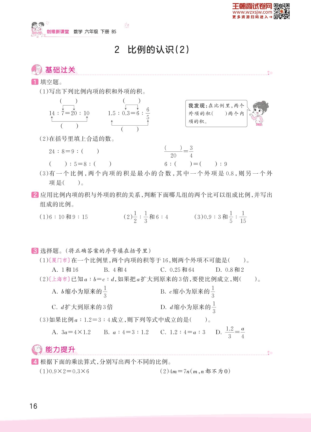 2023下册六年级数学北师版 二 比例——2 比例的认识(2)