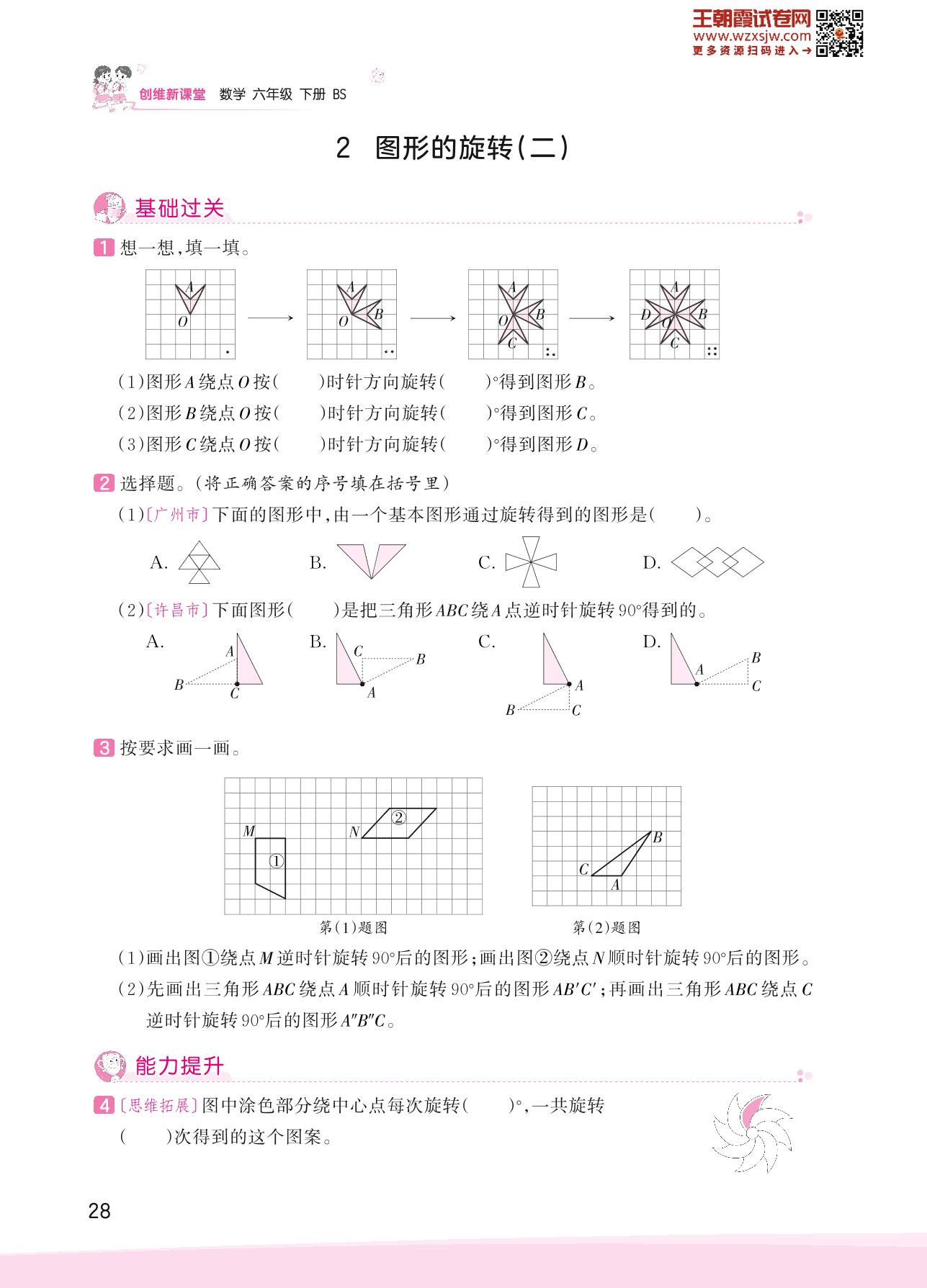 2023下册六年级数学北师版 三 图形的运动——2 图形的旋转(二)