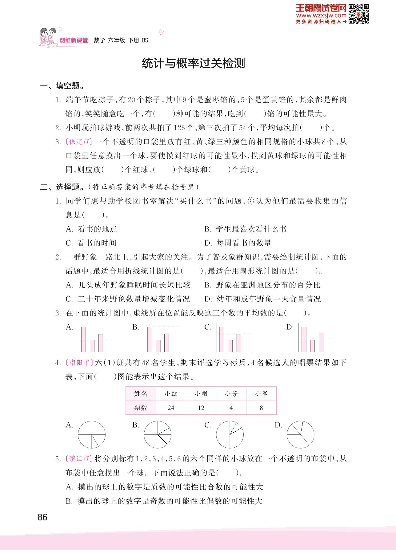 2023下册六年级数学北师版 总复习——统计与概率过关检测