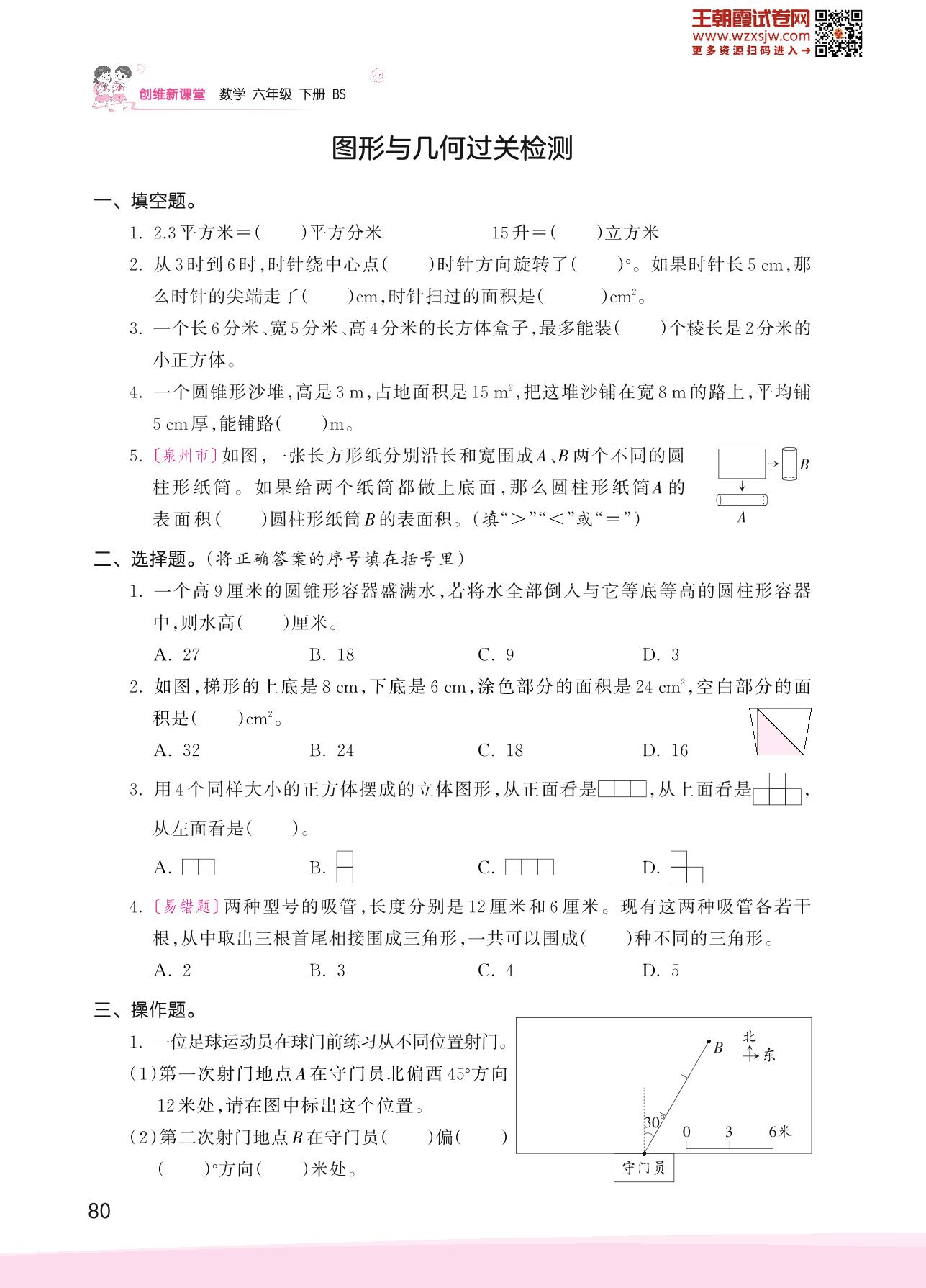 2023下册六年级数学北师版 总复习——图形与几何过关检测