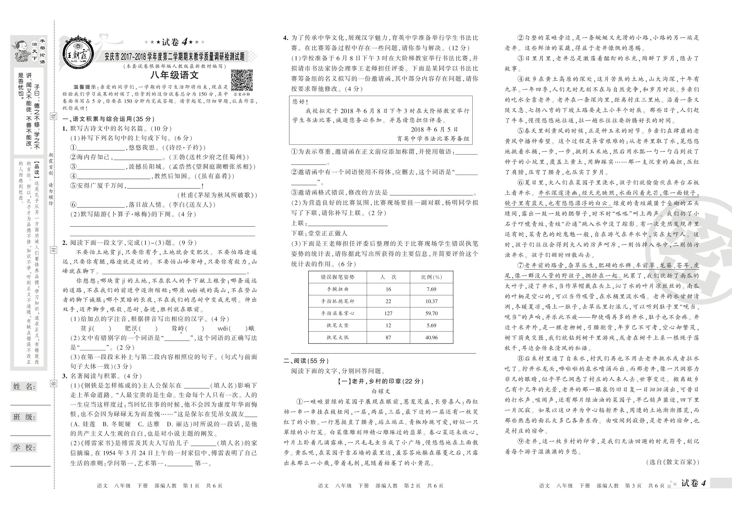 2017-2018学年第二学期安庆市八年级语文试卷(人教版)【4】