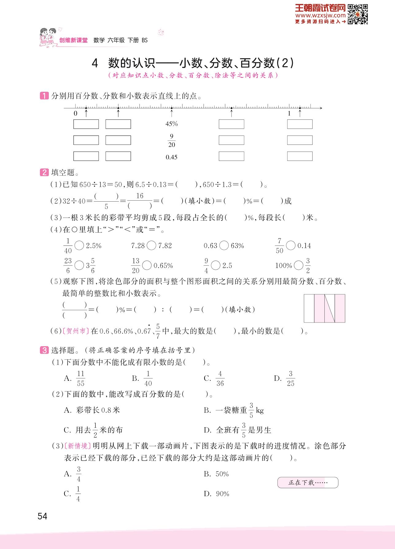 2023下册六年级数学北师版 总复习——4 数的认识——小数、分数、百分数(2)