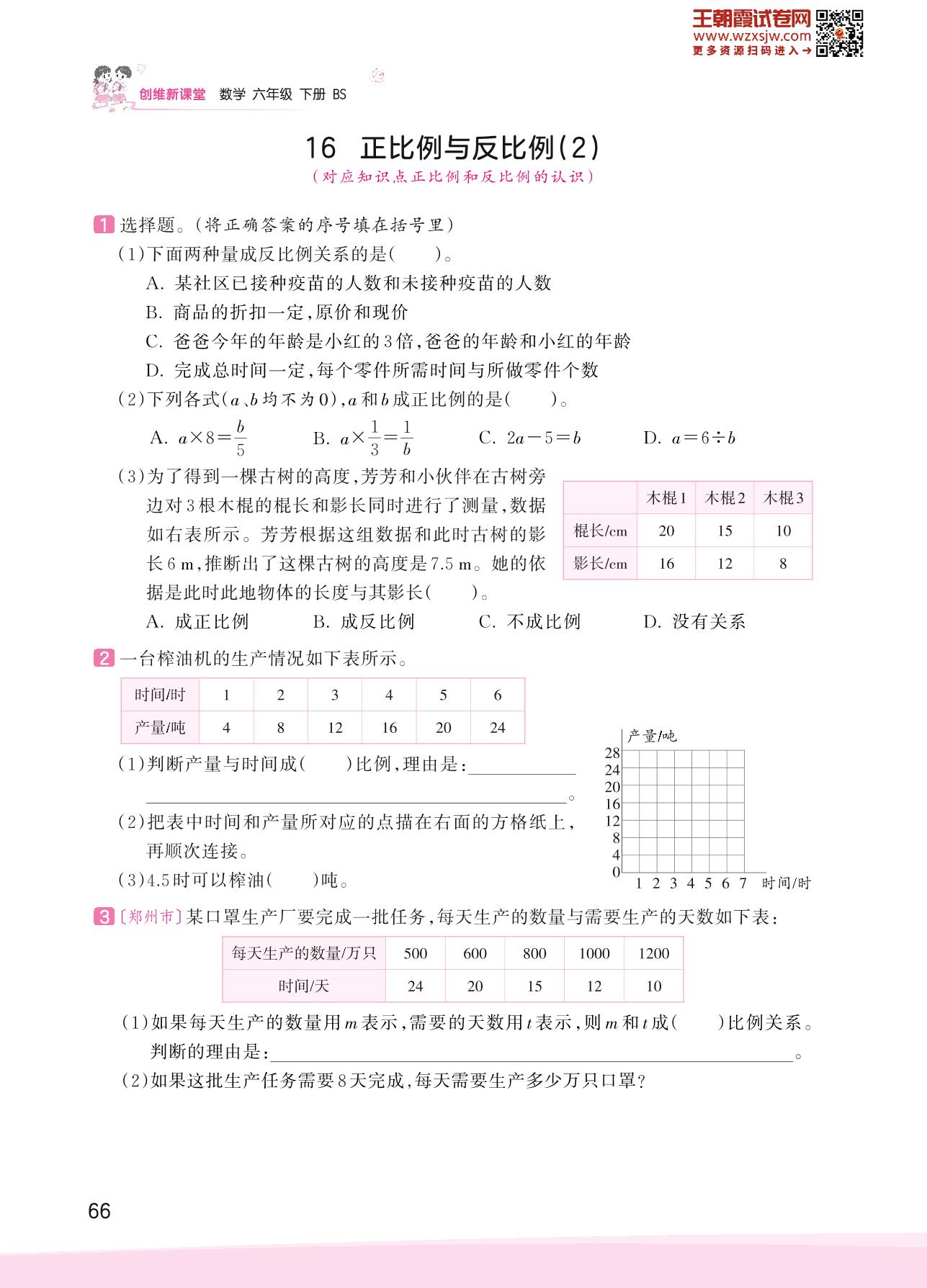 2023下册六年级数学北师版 总复习——16 正比例与反比例(2)