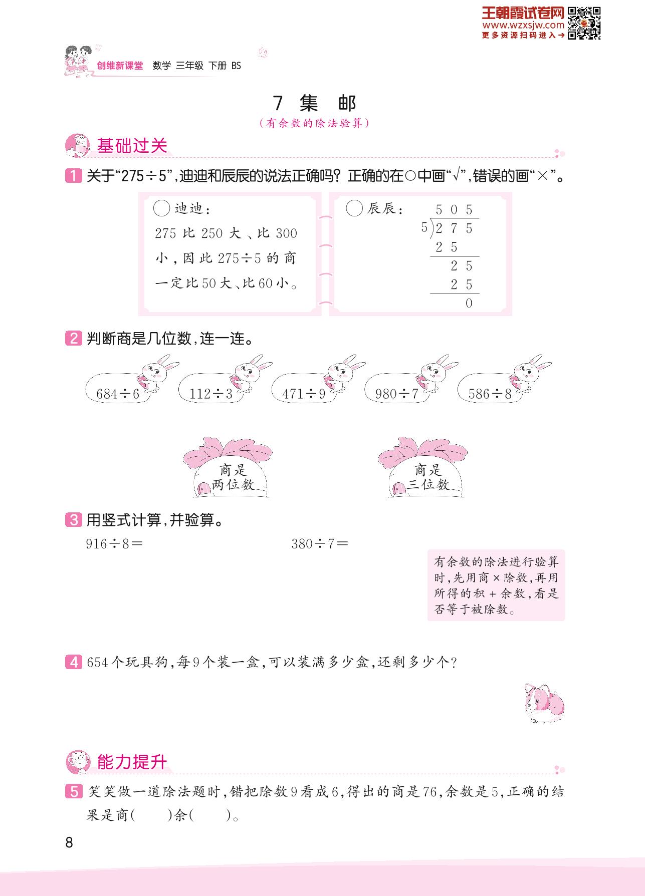 2023下册三年级数学北师版 一 除法——7 集邮