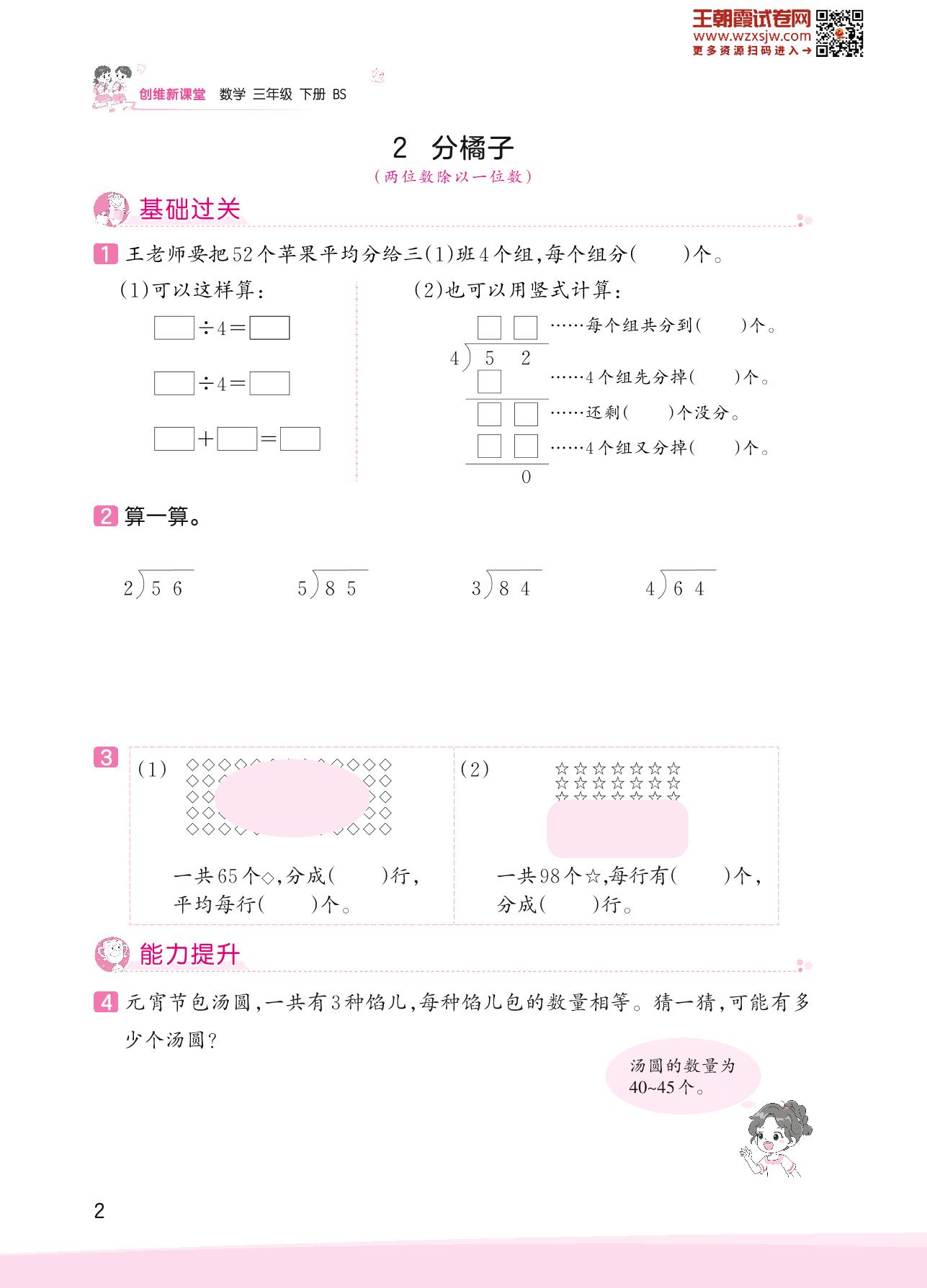 2023下册三年级数学北师版 一 除法——2 分橘子
