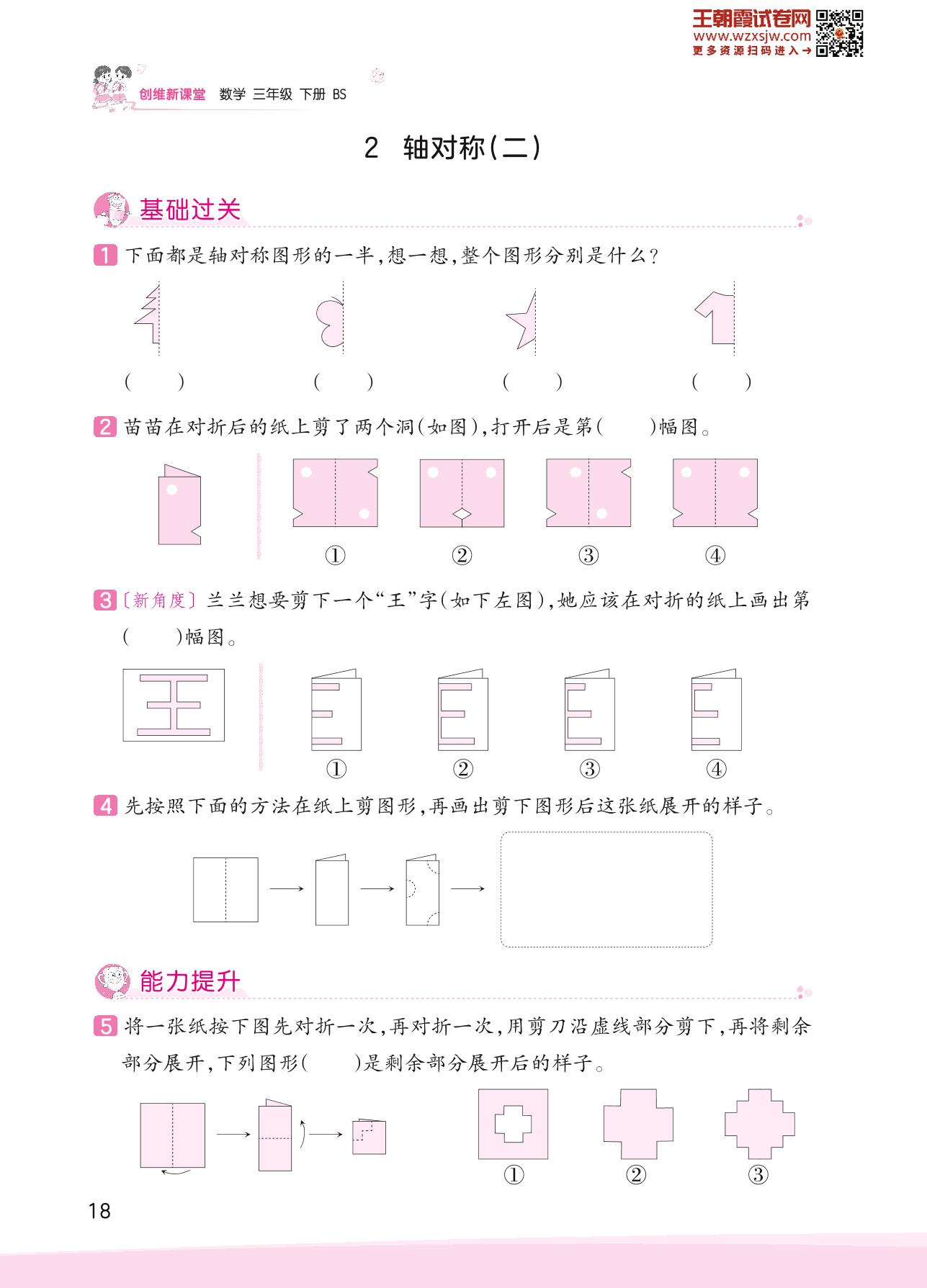 2023下册三年级数学北师版 二 图形的运动——2 轴对称(二)