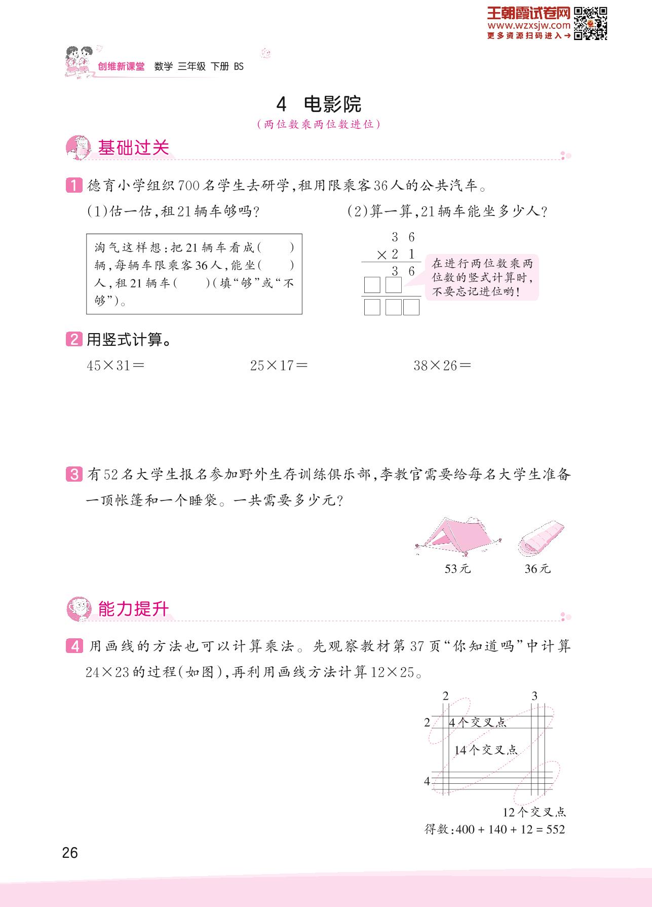 2023下册三年级数学北师版 三 乘法——4 电影院