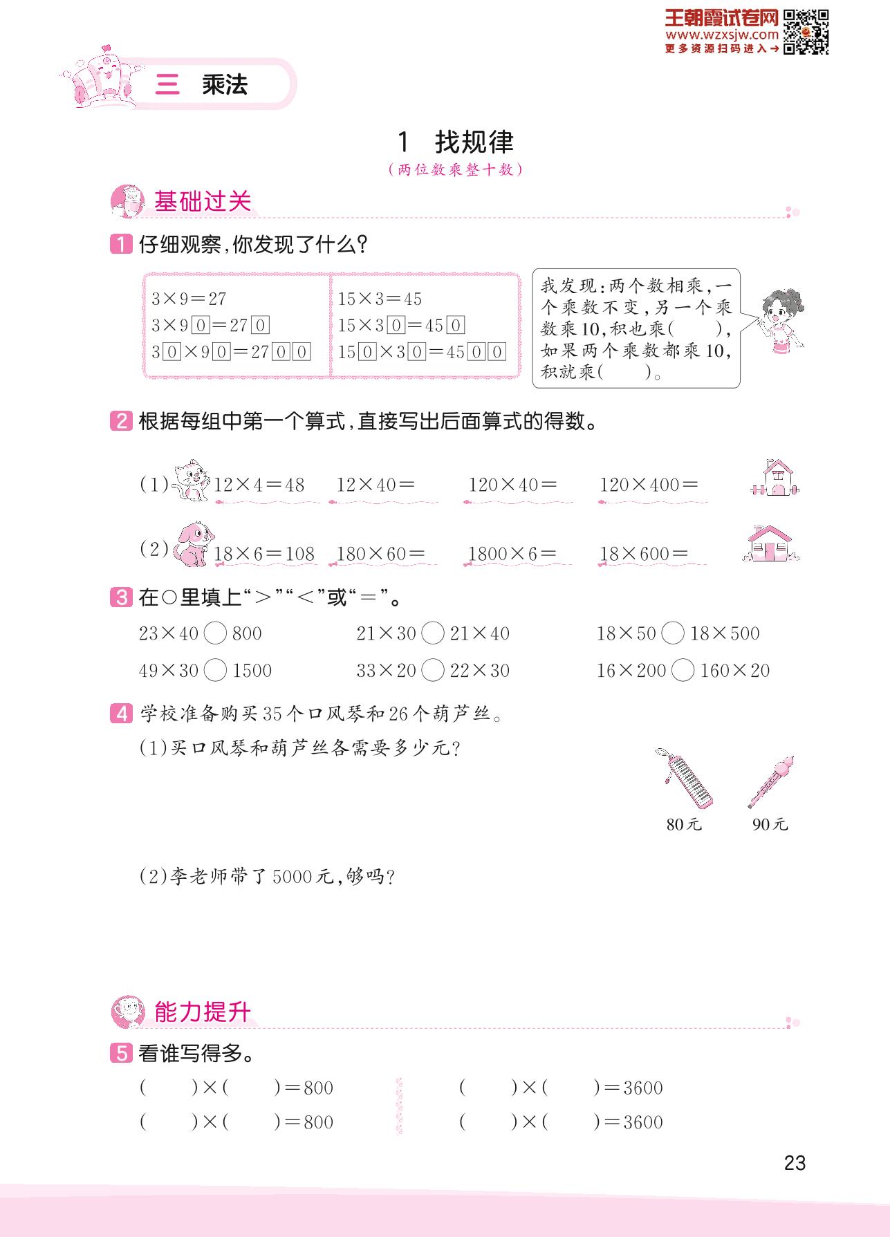 2023下册三年级数学北师版 三 乘法——1 找规律