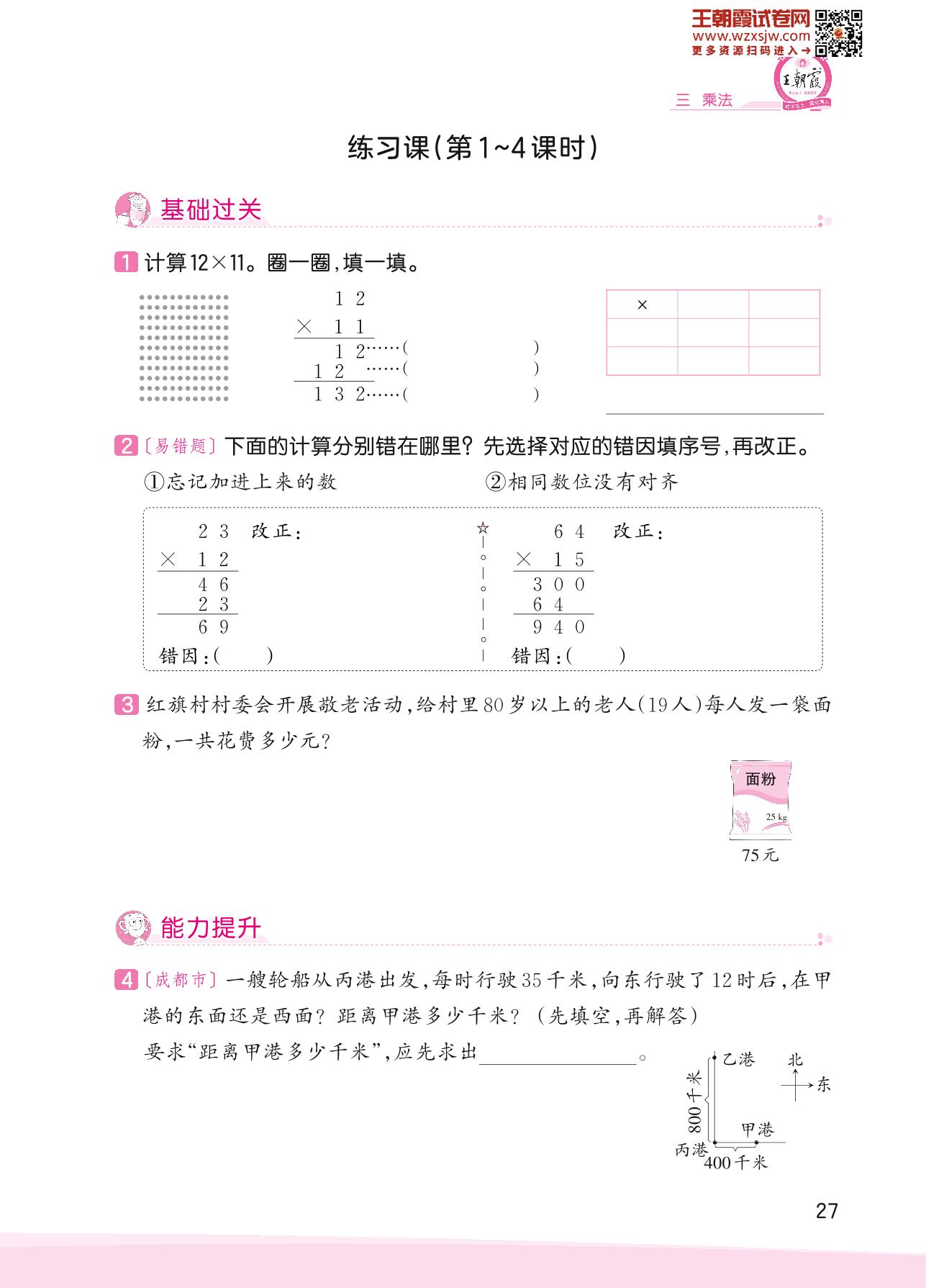 2023下册三年级数学北师版 三 乘法——练习课(第1~4课时)