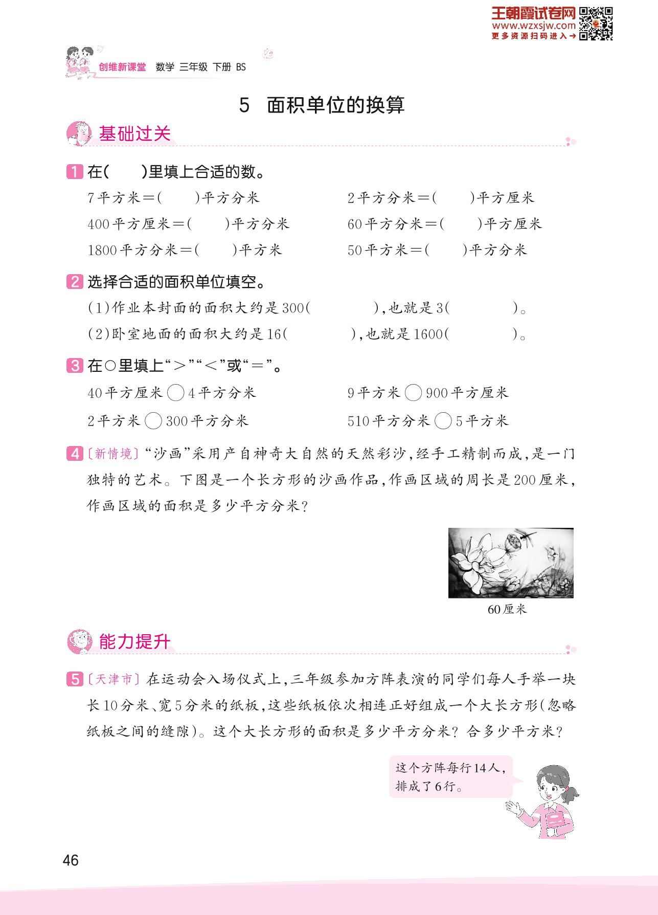 2023下册三年级数学北师版 五 面积——5 面积单位的换算
