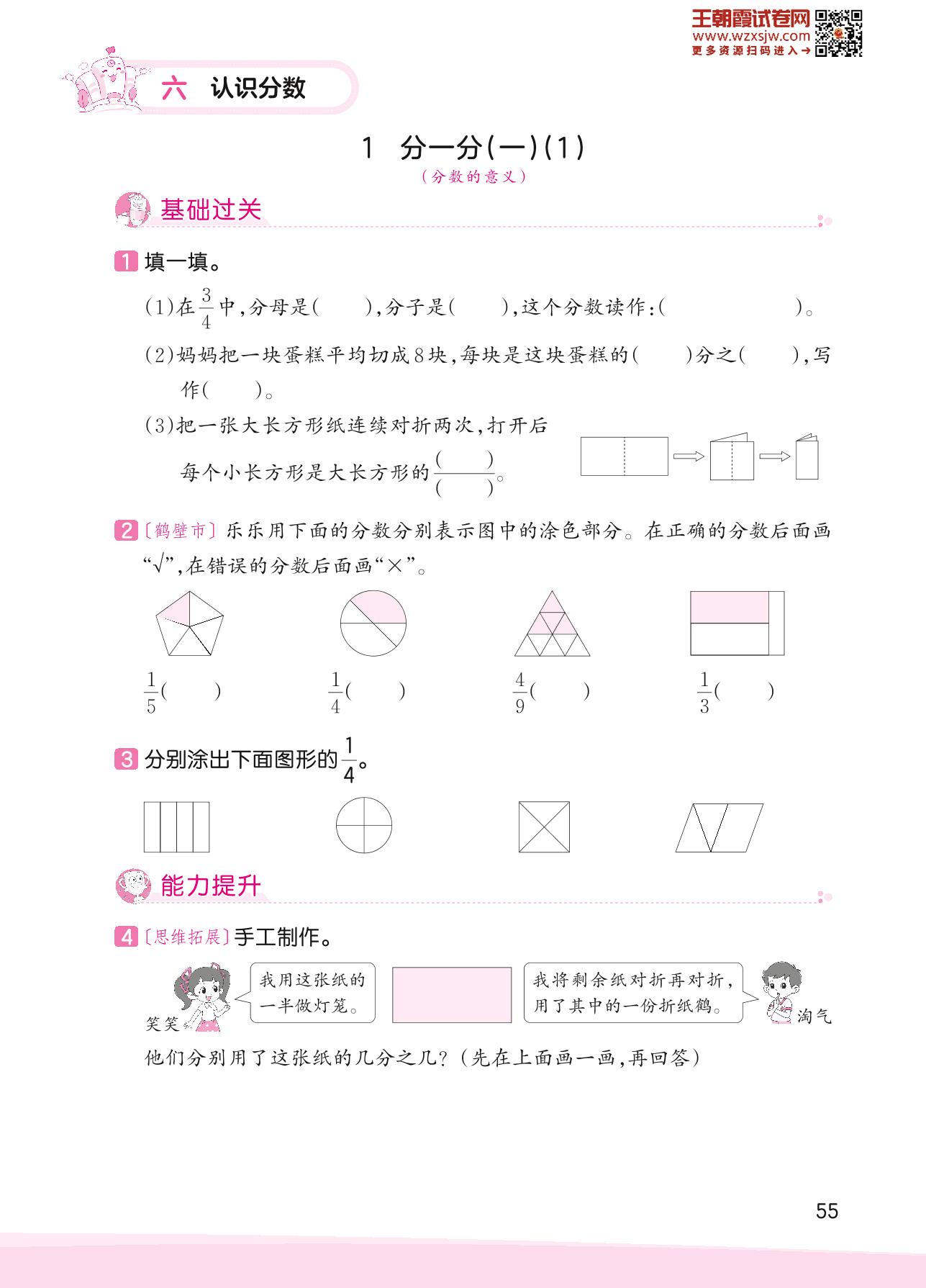 2023下册三年级数学北师版 六 认识分数——1 分一分(一)(1)