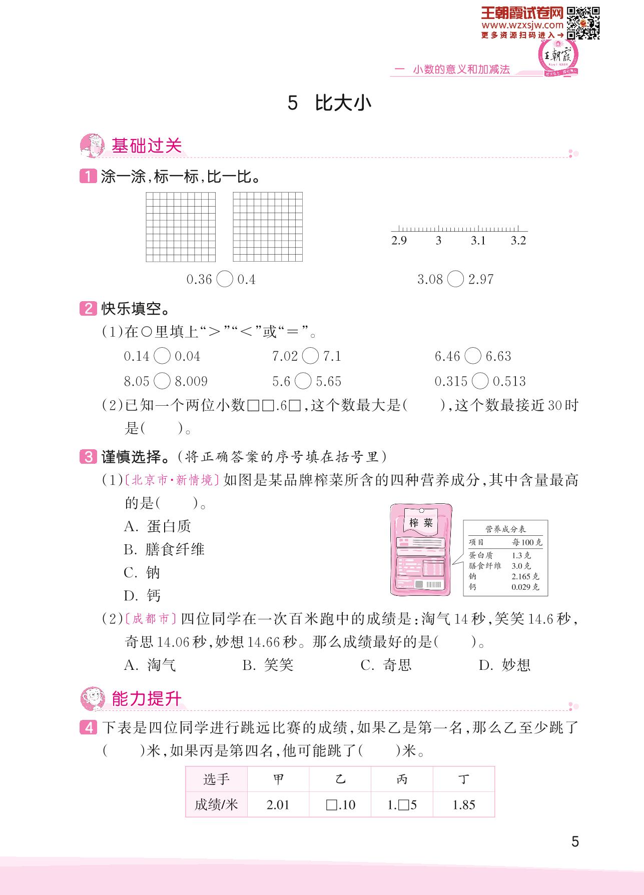 2023下册四年级数学北师版 一 小数的意义和加减法——5 比大小