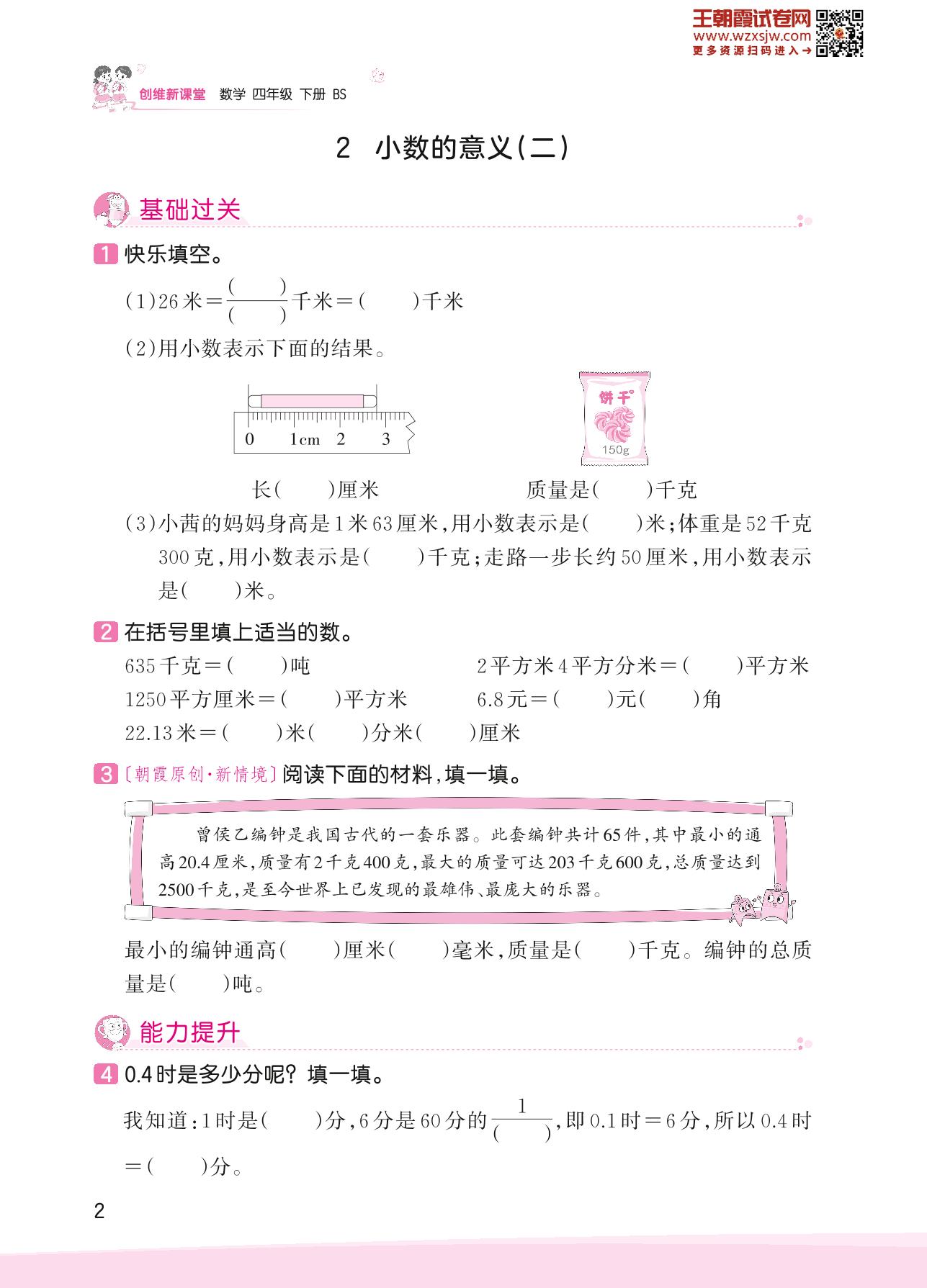 2023下册四年级数学北师版 一 小数的意义和加减法——2 小数的意义(二)