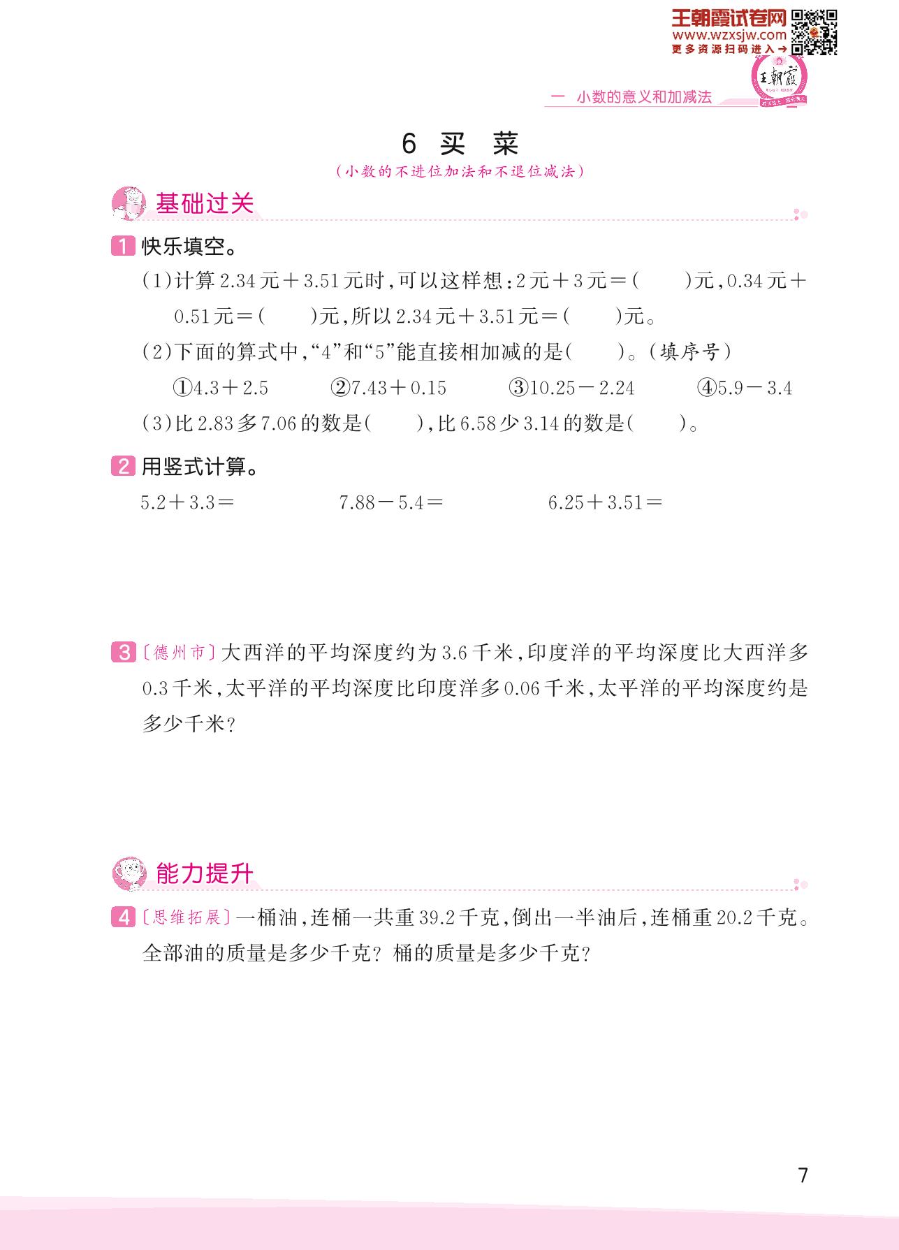2023下册四年级数学北师版 一 小数的意义和加减法——6 买菜
