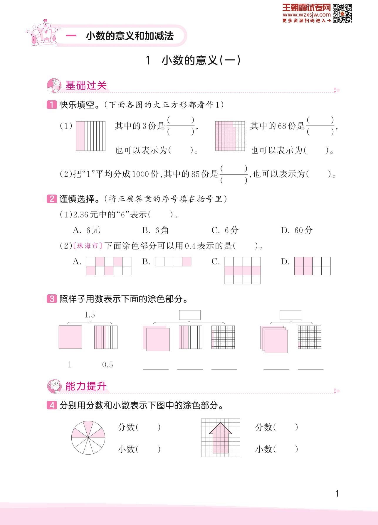 2023下册四年级数学北师版 一 小数的意义和加减法——1 小数的意义(一)