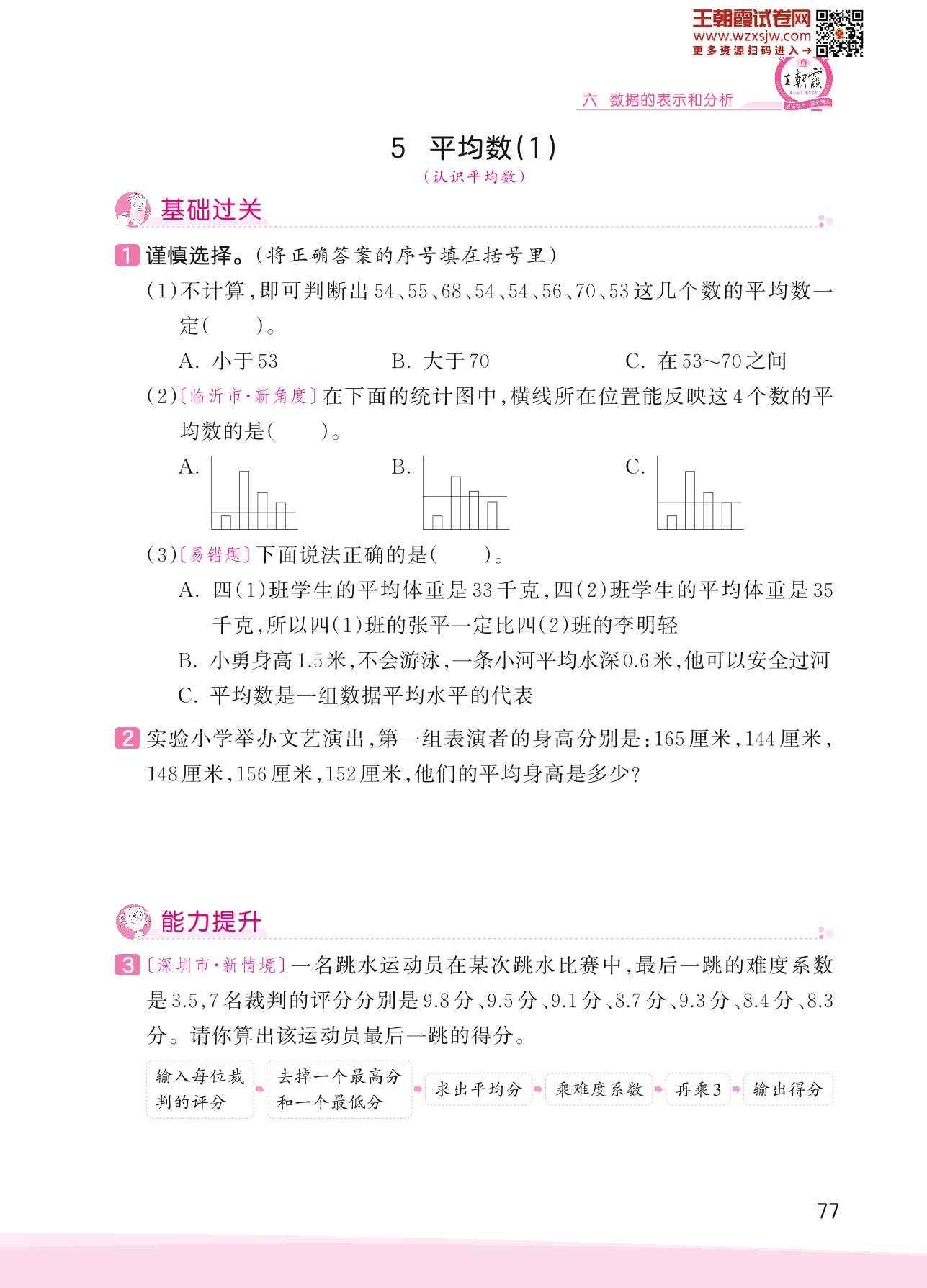 2023下册四年级数学北师版 六 数据的表示和分析——5 平均数(1)