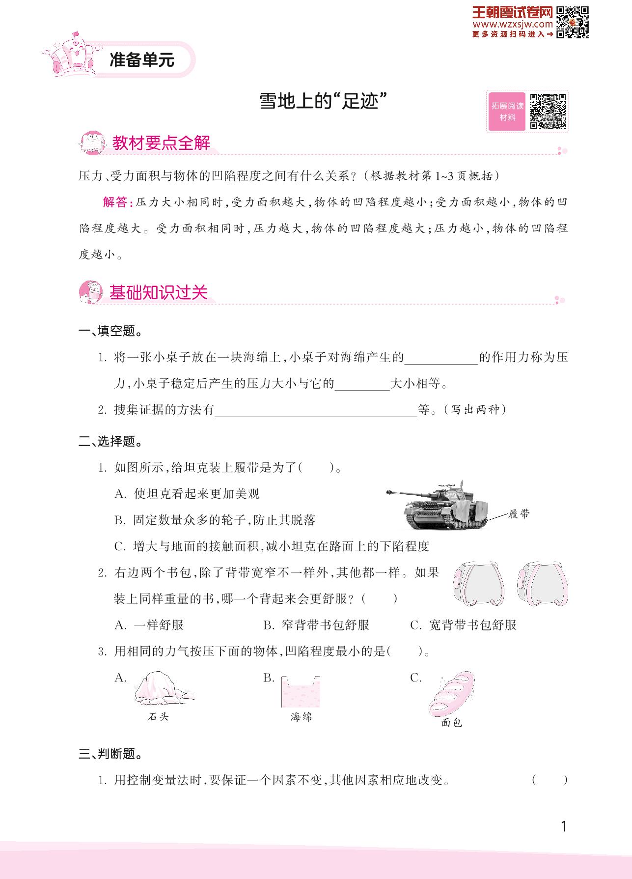 2023下册五年级科学大象版 准备单元——雪地上的“足迹”