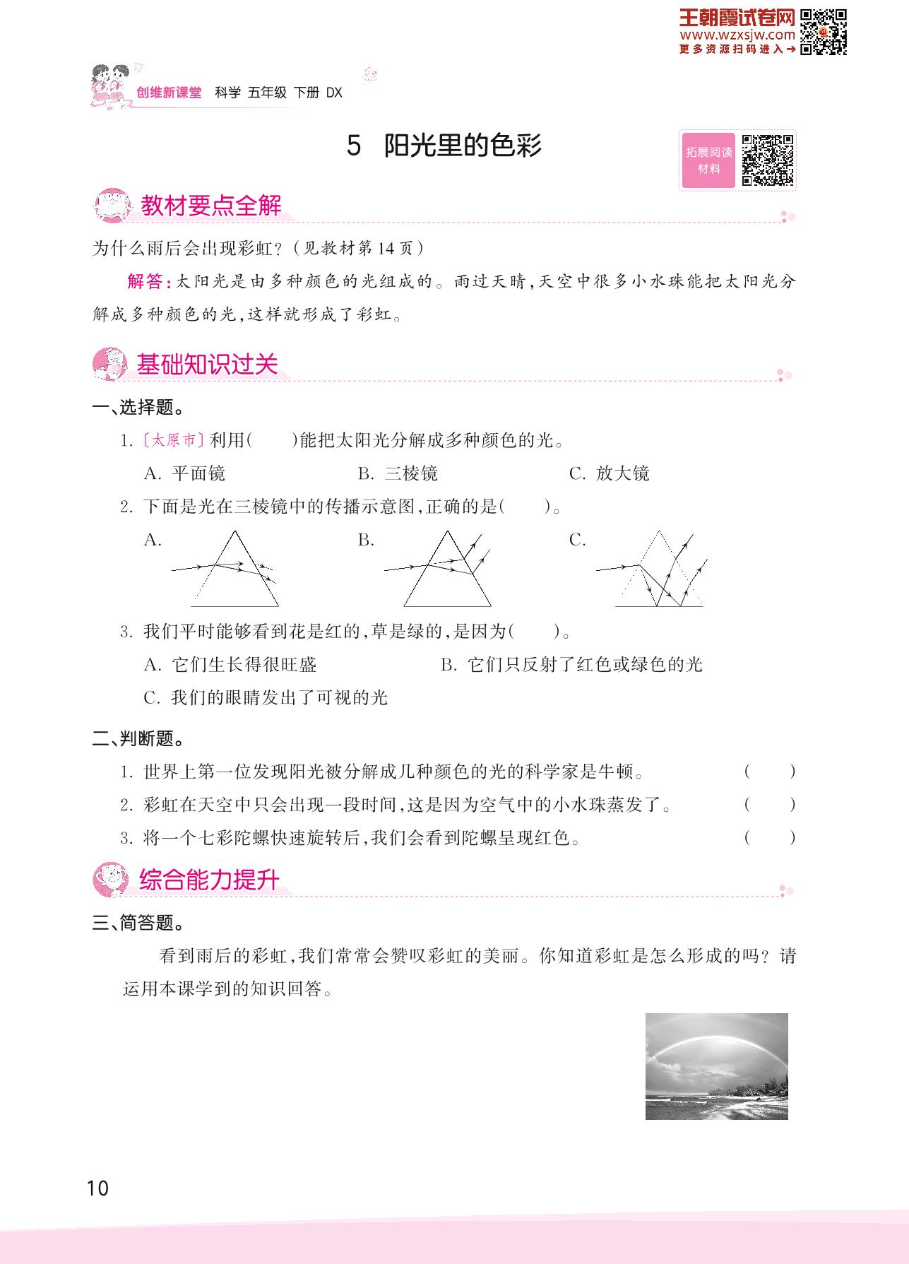 2023下册五年级科学大象版 第一单元 探寻光的路线——5 阳光里的色彩