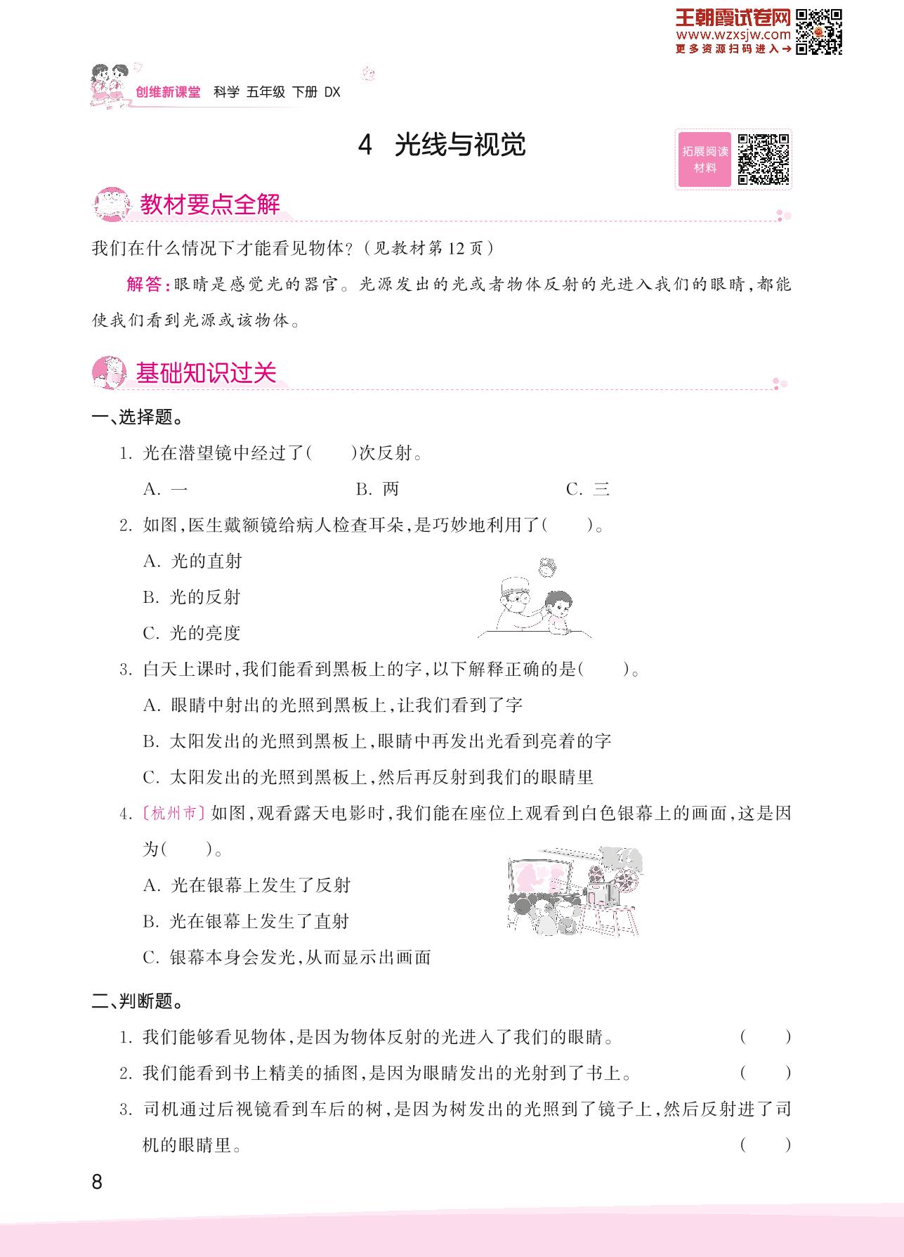 2023下册五年级科学大象版 第一单元 探寻光的路线——4 光线与视觉