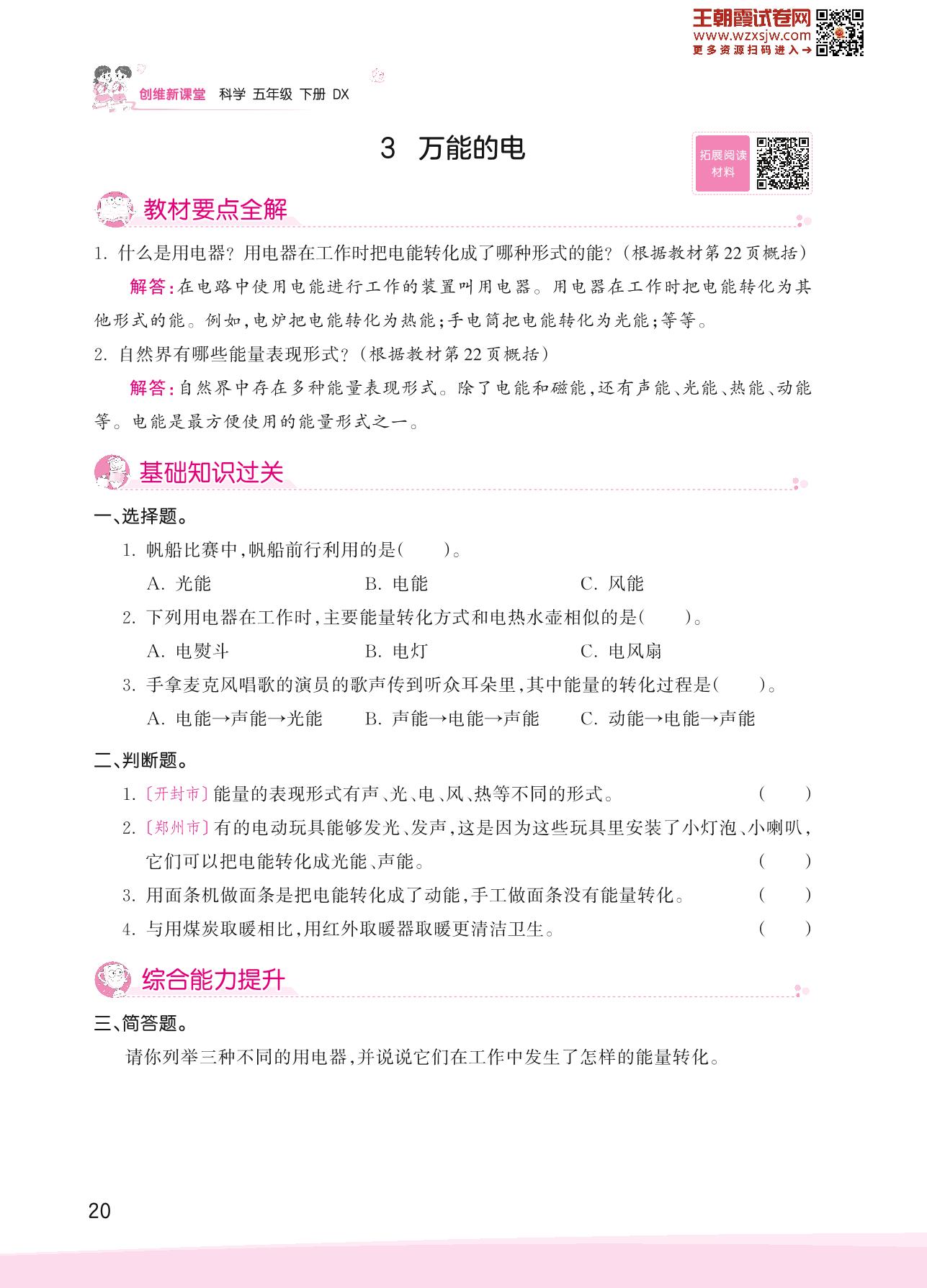 2023下册五年级科学大象版 第二单元 能量——3 万能的电