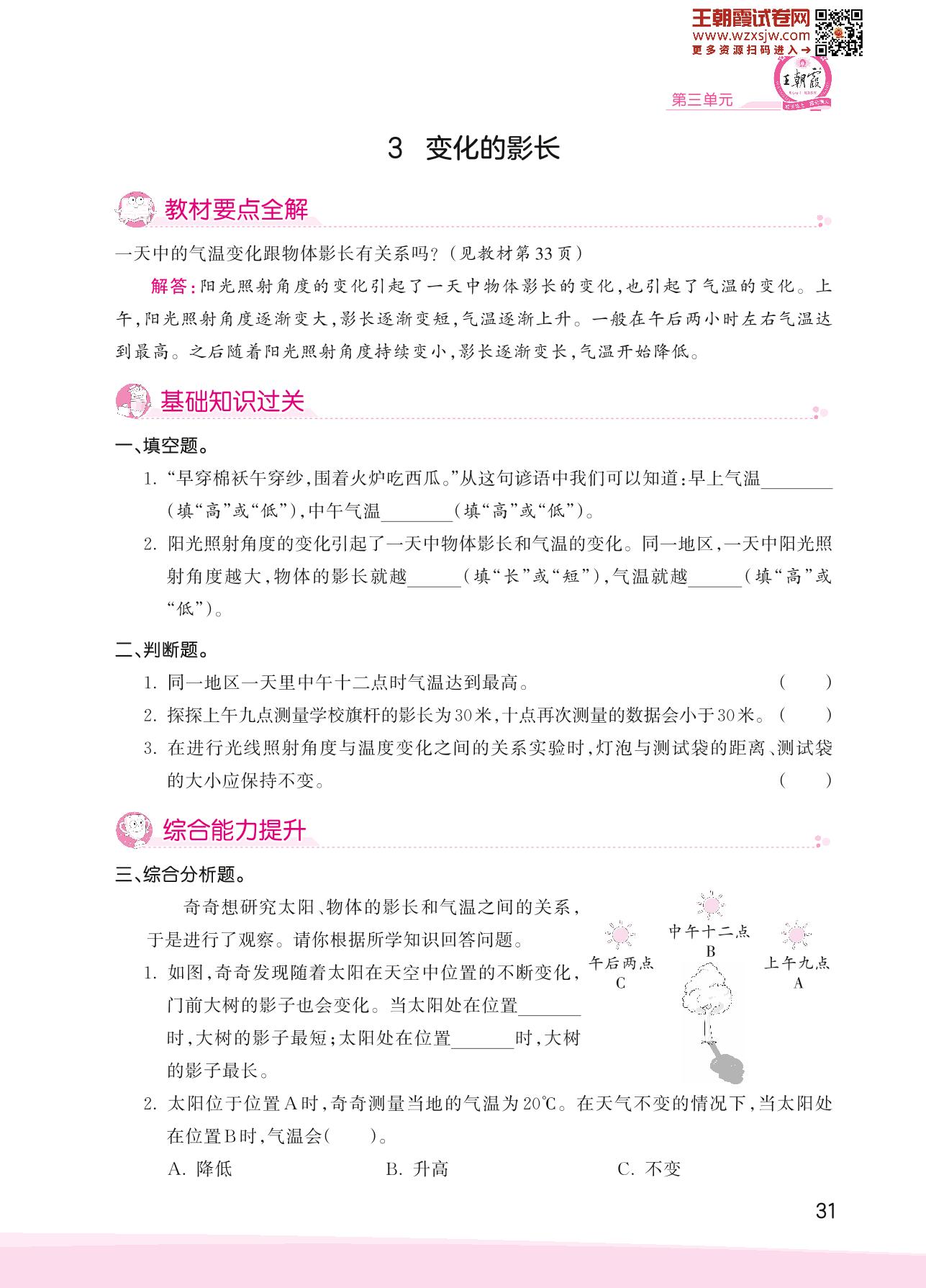 2023下册五年级科学大象版 第三单元 转动的地球——3 变化的影长