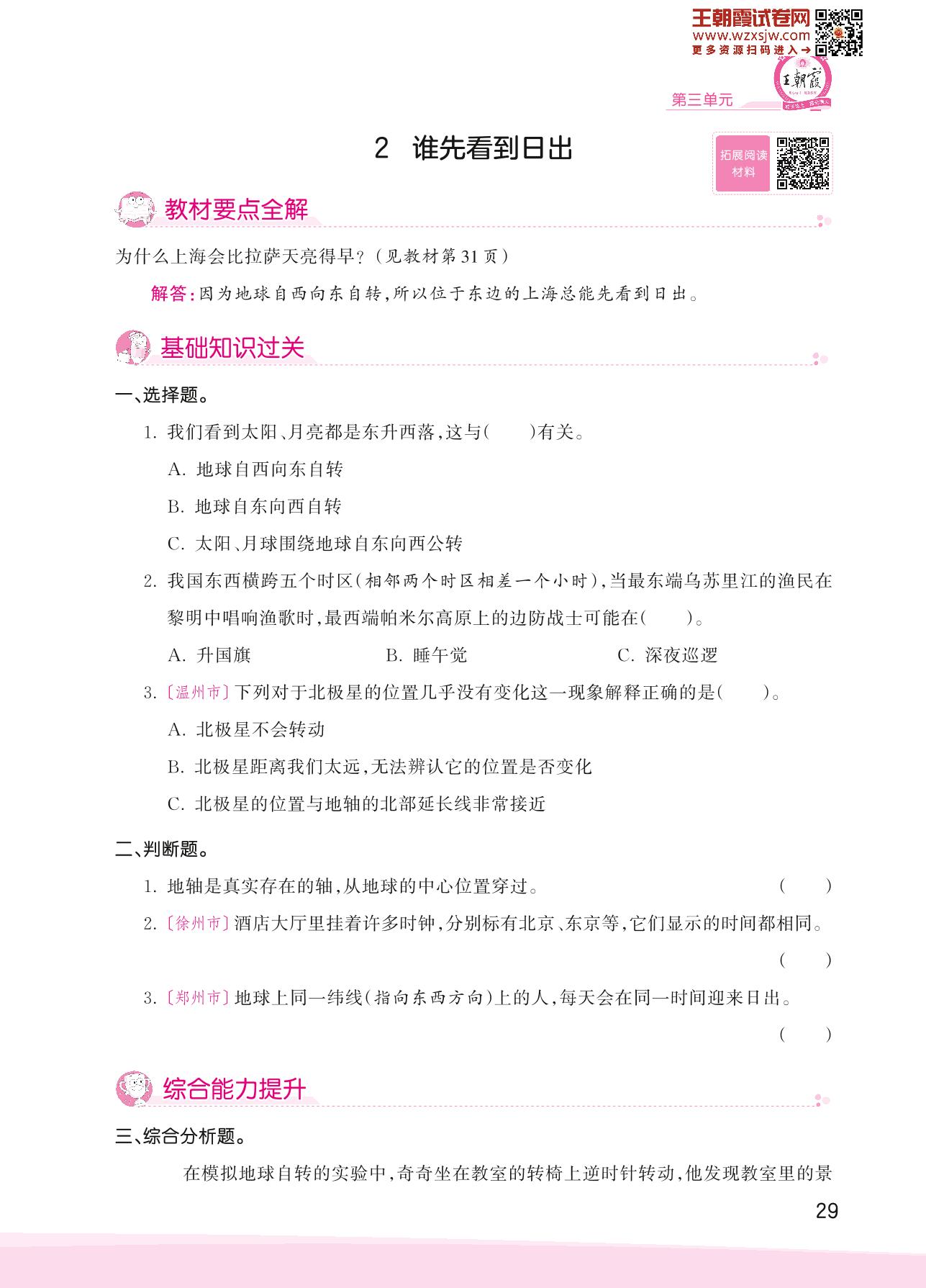 2023下册五年级科学大象版 第三单元 转动的地球——2 谁先看到日出