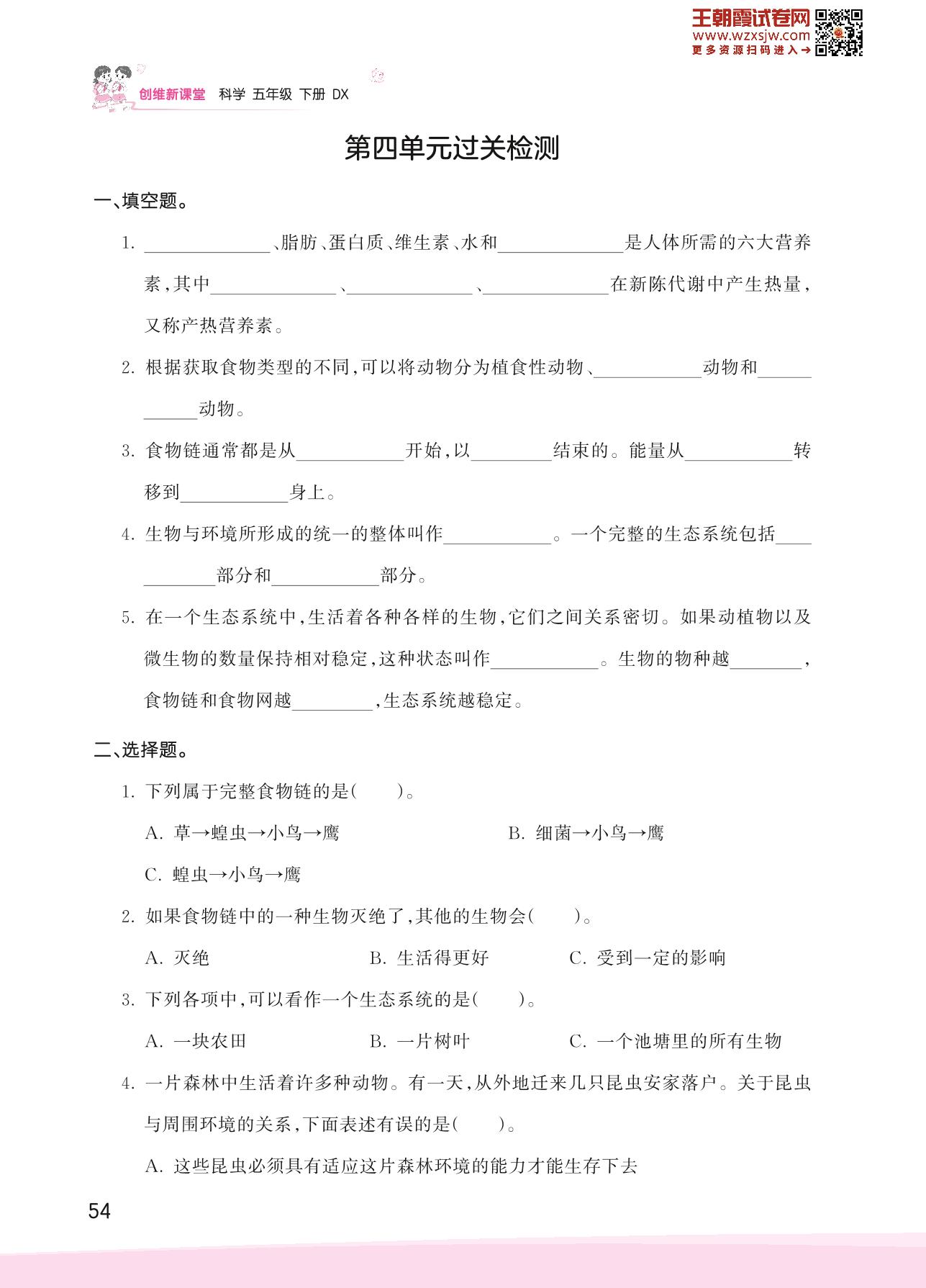 五年级科学大象版下册单元卷